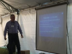 (The classrooms at DARC were large outdoor event tents. Many of the photos show the presenter in shadow due to the lighting conditions inside the tent during the presentation.)