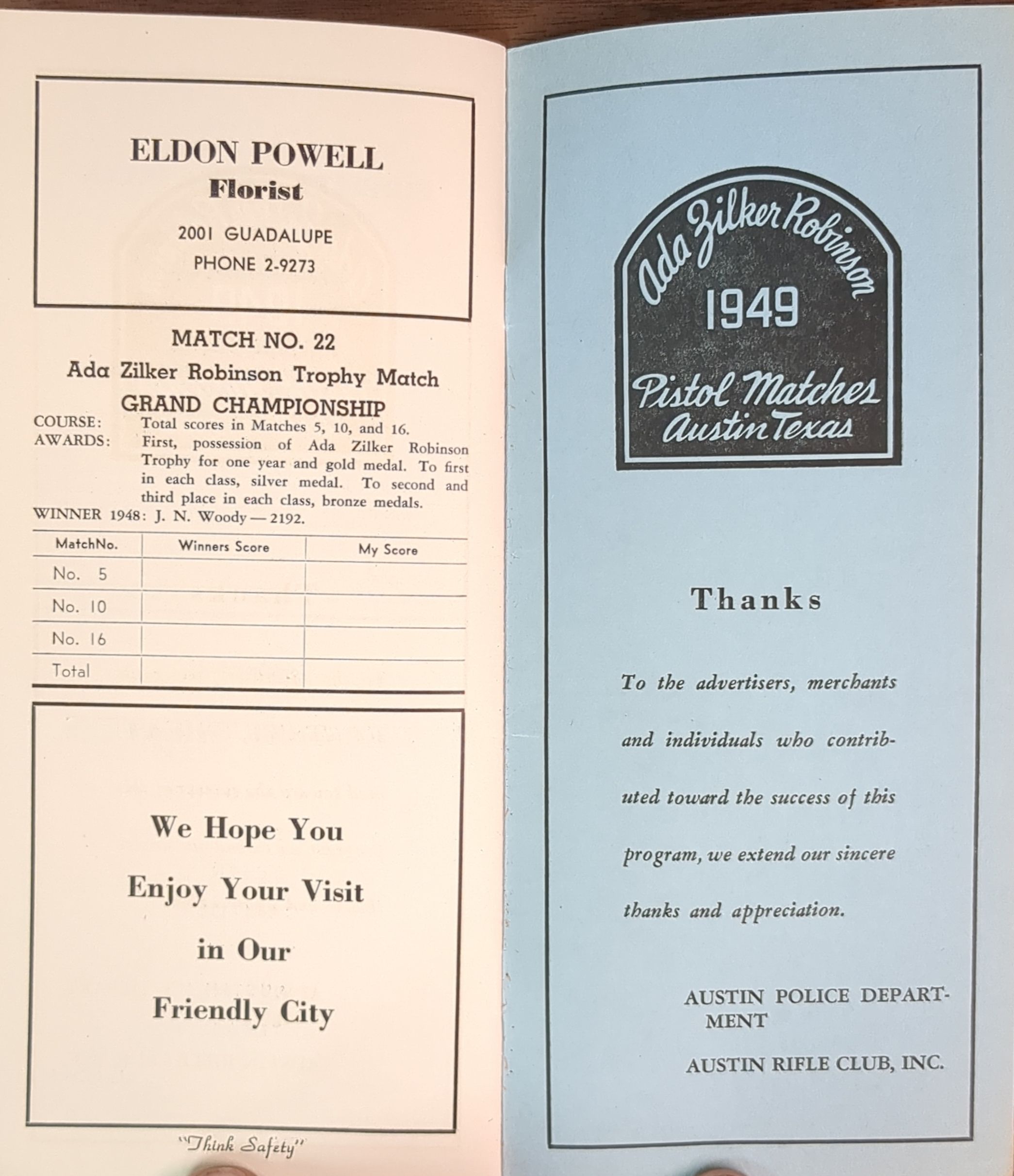Someone recently asked me about the match and the stages, so I dug out the old match booklets, found one of the original cardboard targets in my shed, and found a few photos to share.