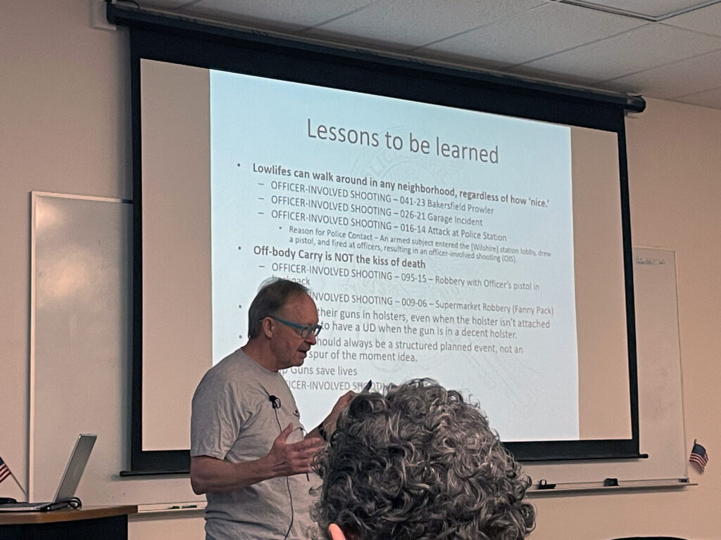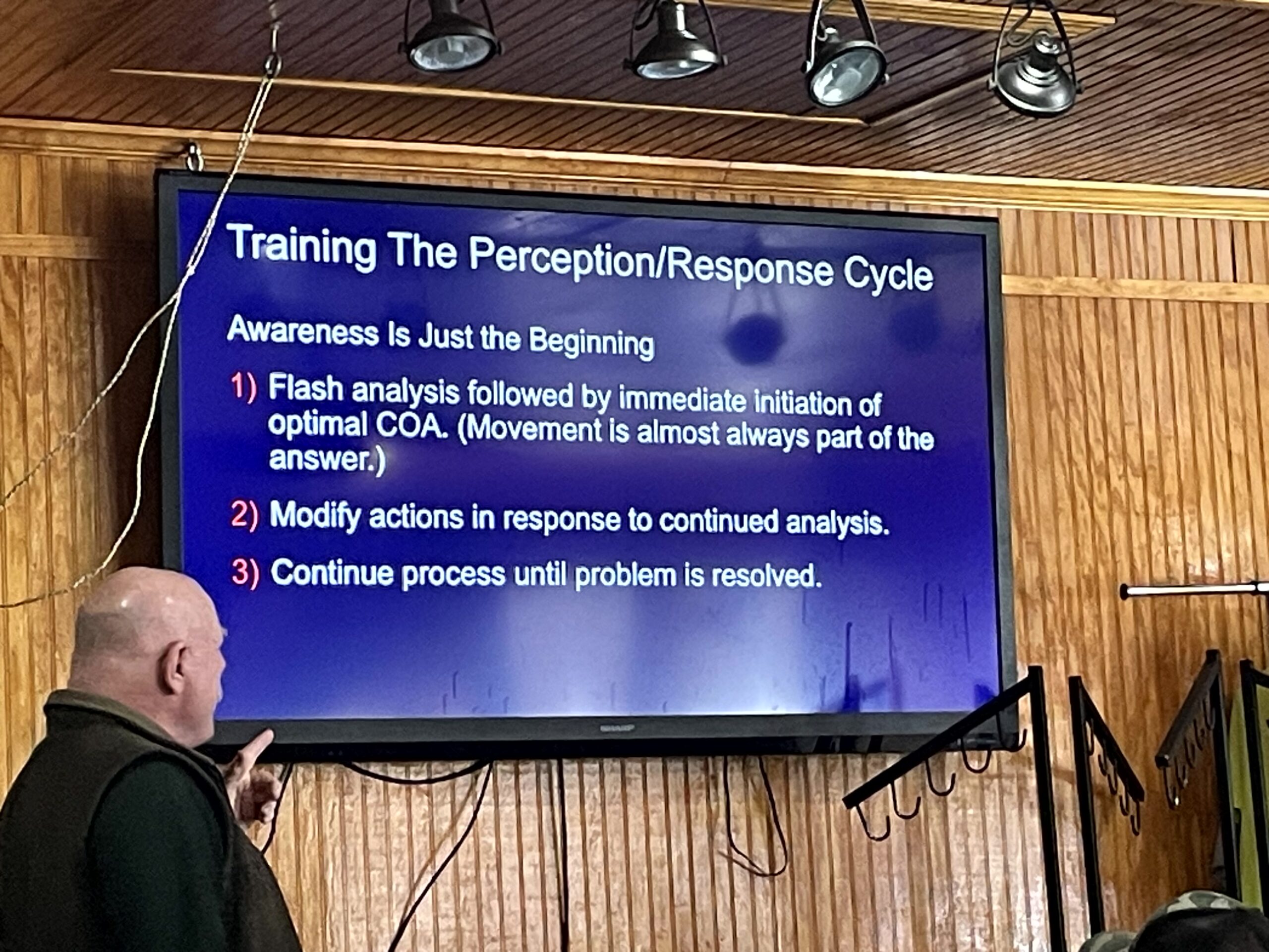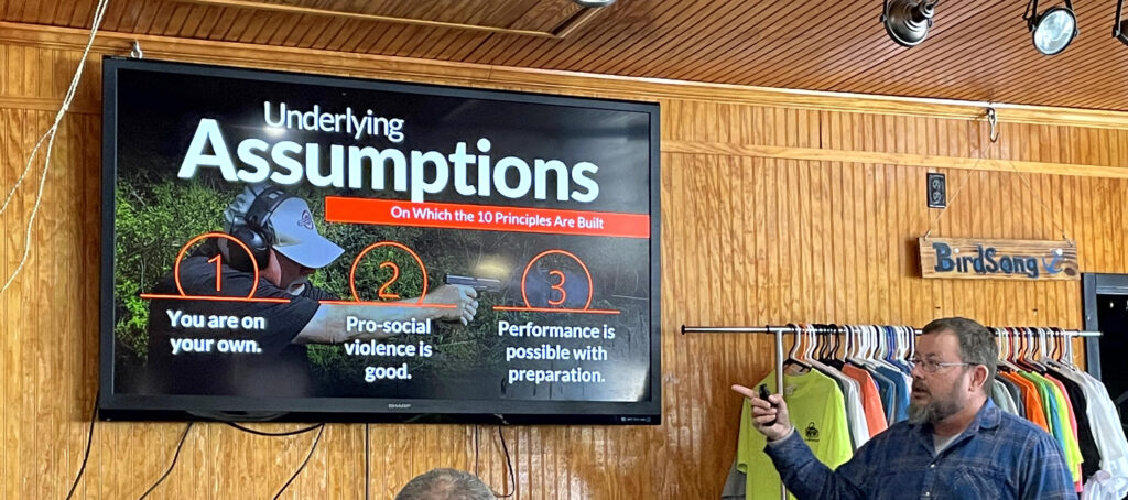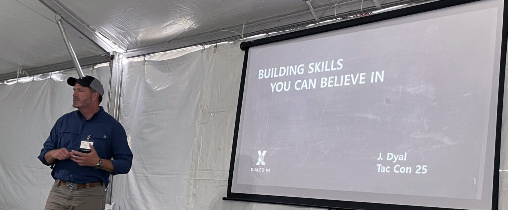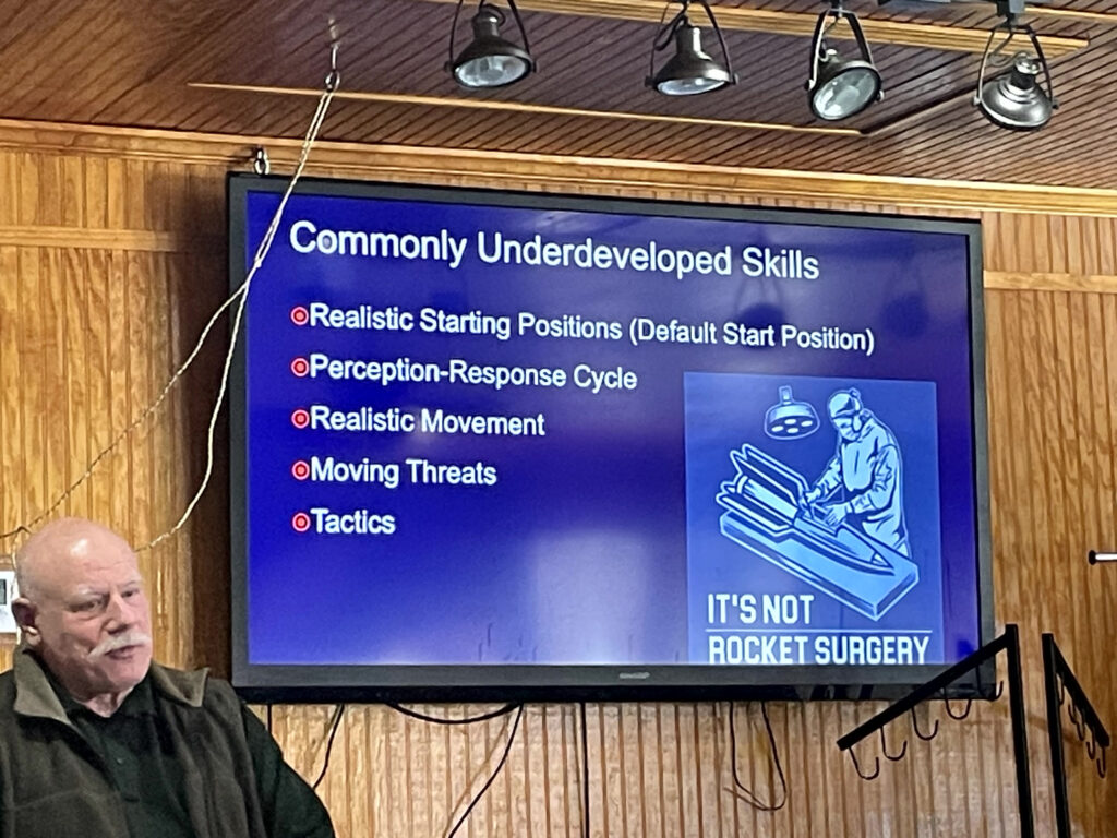 John Hearne gave his detailed range safety presentation, and John Holschen also covered his views on the language of the “Four Safety Rules” (and need for improvement). My own thoughts on that topic didn’t get presented at this event, but you can read them here. There was discussion during the event, (and in the That Weems Guy podcast episode) about the difference between doctrine and dogma, specifically as it relates to reverence some trainers have for Cooper’s original wording and sequence.
