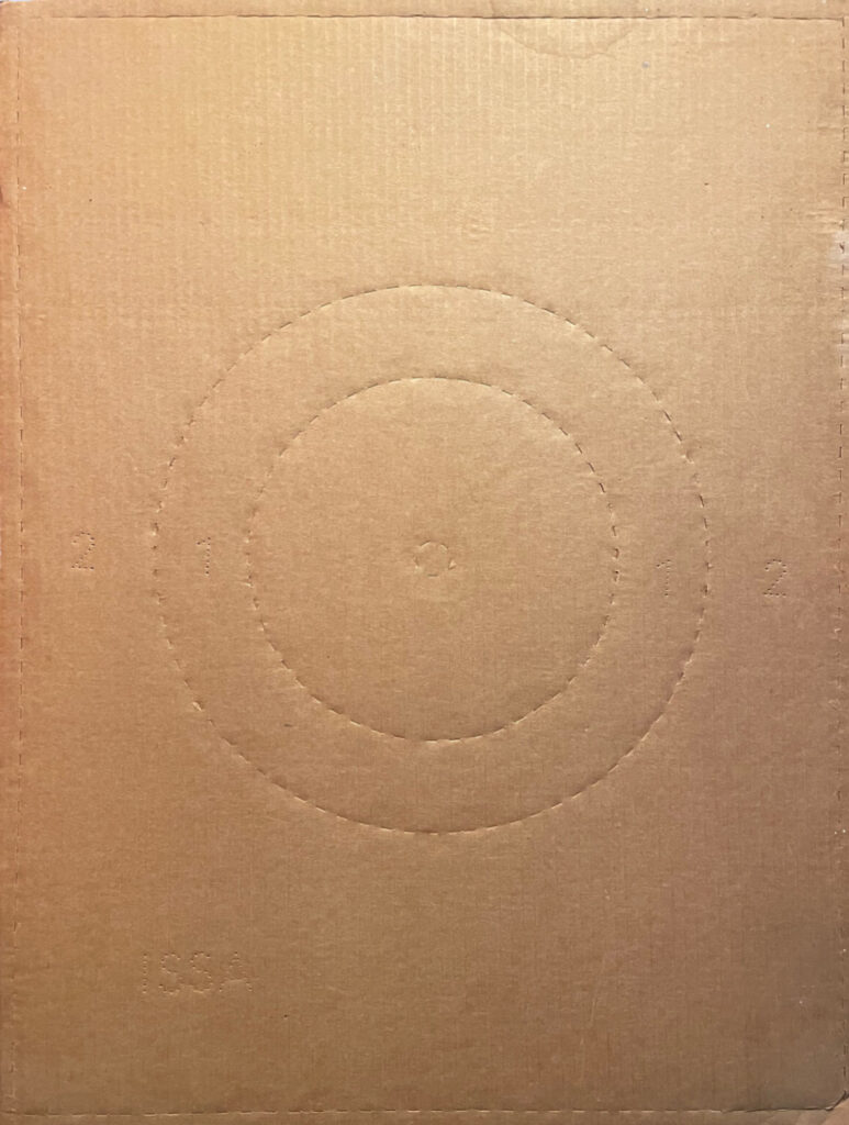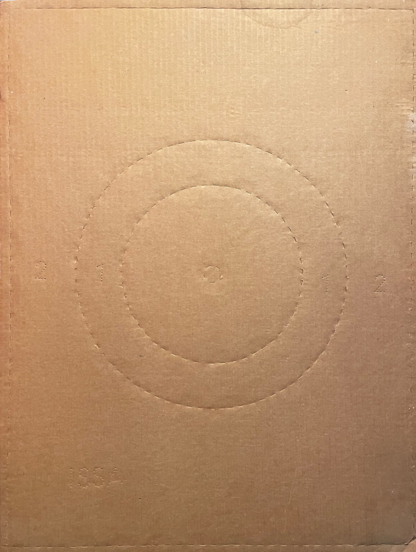 Time’s a Wastin used the International Speed Shooting Association target, which was an 18″x24″ cardboard rectangle, with 8″ and 12″ circles in the center. Shots inside the 8″ circle were “down zero”, Shots outside the 8″ but inside the 12″ added 0.2 seconds, and shots on the paper but outside the 12″ circle added 0.5 seconds. This version of time only scoring pre-dated the scoring used in IDPA, and had smaller time penalties for poor accuracy than most of the current Time Only scoring rules.