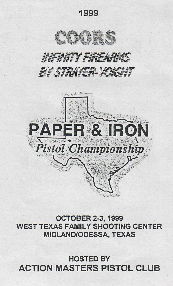 Back in the 1990’s a pistol club in Midland, Texas ran a cool match called the Texas Paper and Iron Championship. Like the Steel Challenge and Bianchi Cup, it featured the same stages each time. It had surprisingly strong sponsorship (including Coors), and a great prize table. Penny and I and others from the KR Training family shot the match many years in a row, with our last visit being in 2001.
