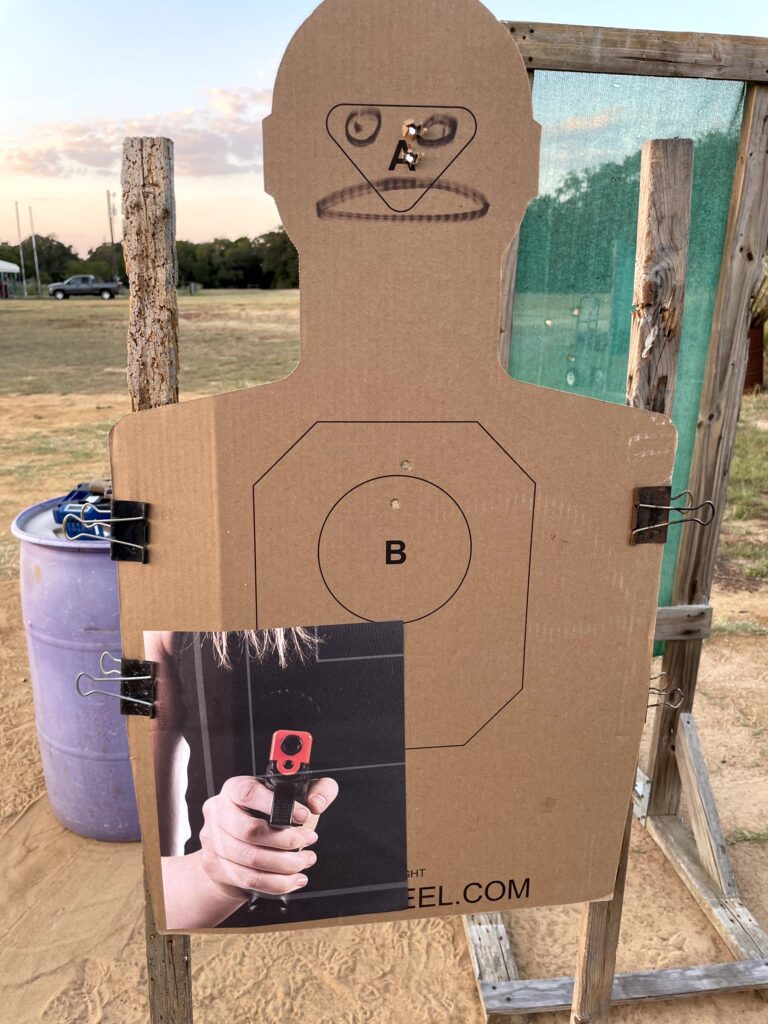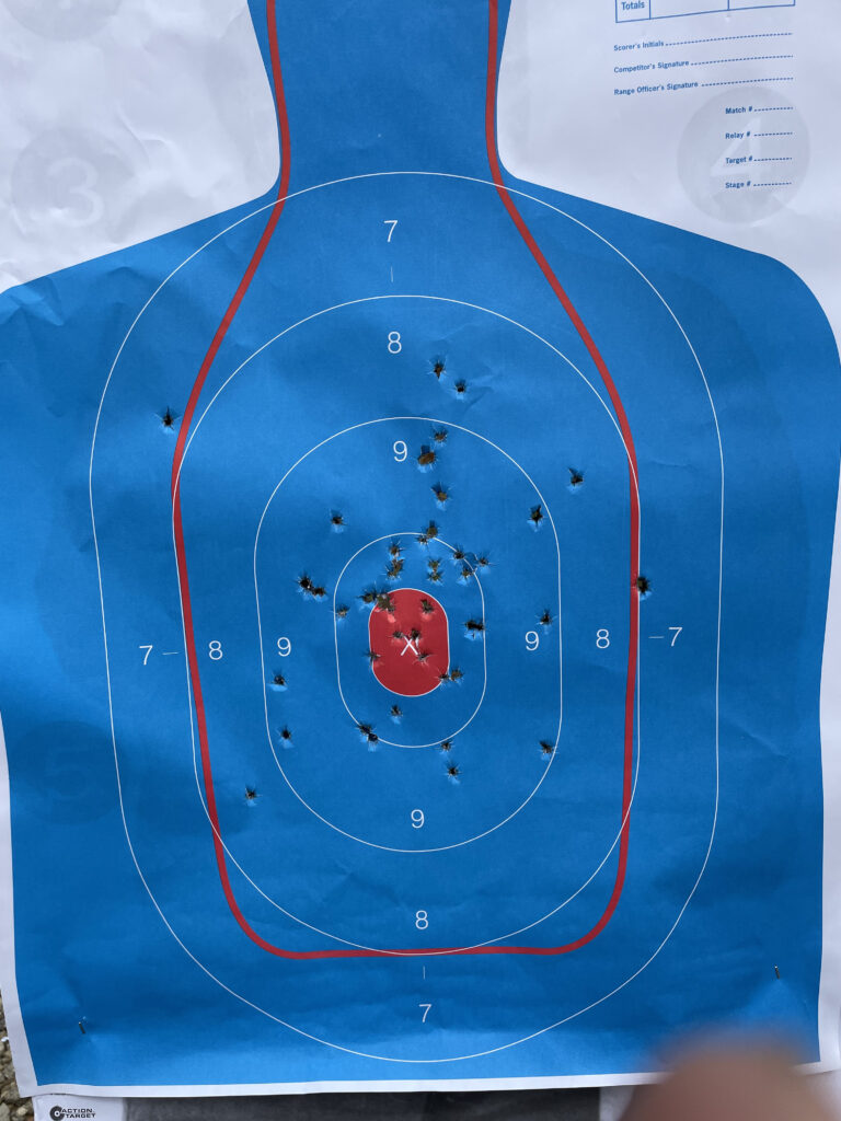 I should have used an actual ShootSteel cardboard target for the videos, but I just grabbed a shot up USPSA target, taped one of my target centers on it, and got to work.