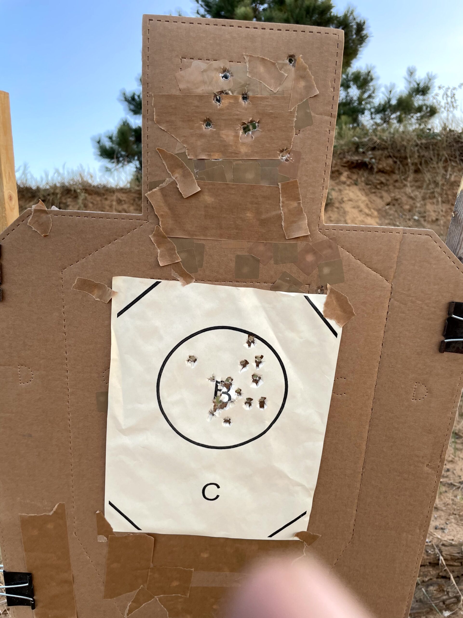 We’ve had an unusually high number of basic level students train with us in 2025, but their interest in higher level classes, particularly those focusing on carrying on body outside home, has been low. In response to that trend, I modified our old Home Defense Tactics course into the new Home Defense Tactics and Shooting Skills course. Instead of teaching home defense with inert plastic guns (often called “red guns” or “blue guns”) in a student’s home, I teach the same skills in the A-Zone classroom building with the inert guns and add an extra hour of live fire drills. Part of my curriculum development work for the live fire drills was to go to the range and shoot the drills I planned to use in the course. Here are two short videos that show a progression of drills from simple to complex.