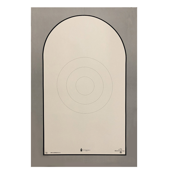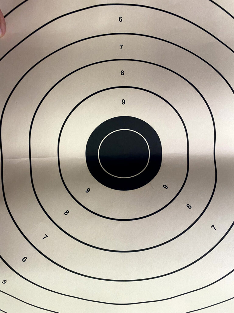 It has a 4″ center, roughly 8″ 9 ring and roughly 12″ 8 ring…very similar to the modern NRA D-1 tombstone target used in the Bianchi Cup and the Glock Shooting Sports Foundation matches.