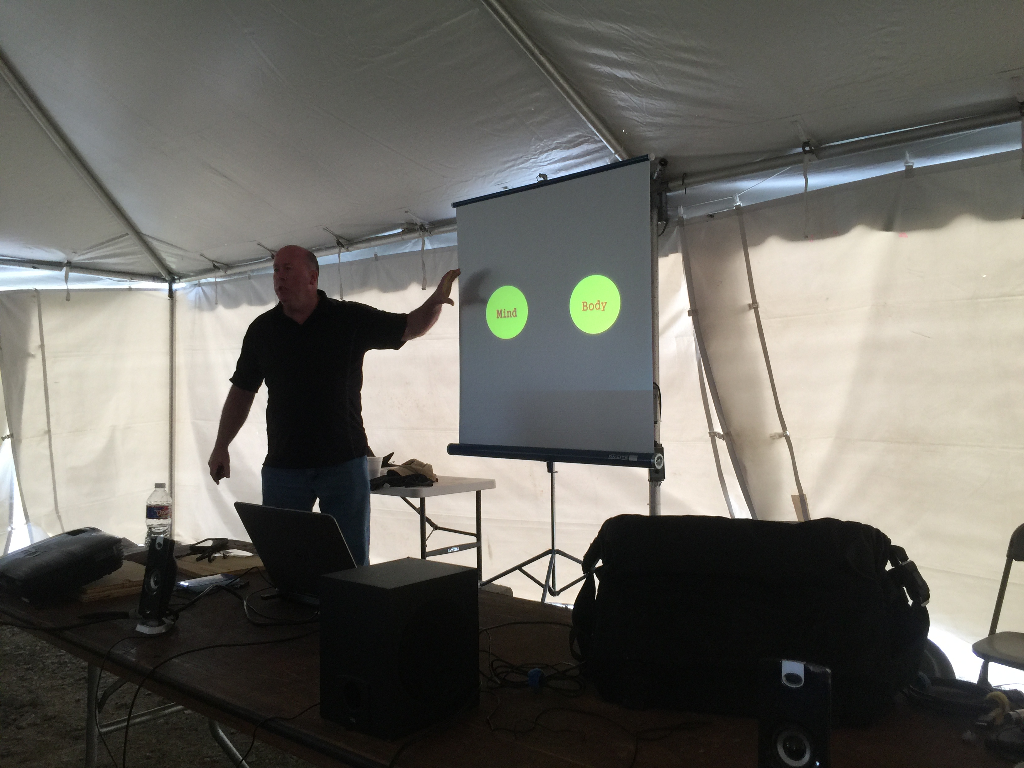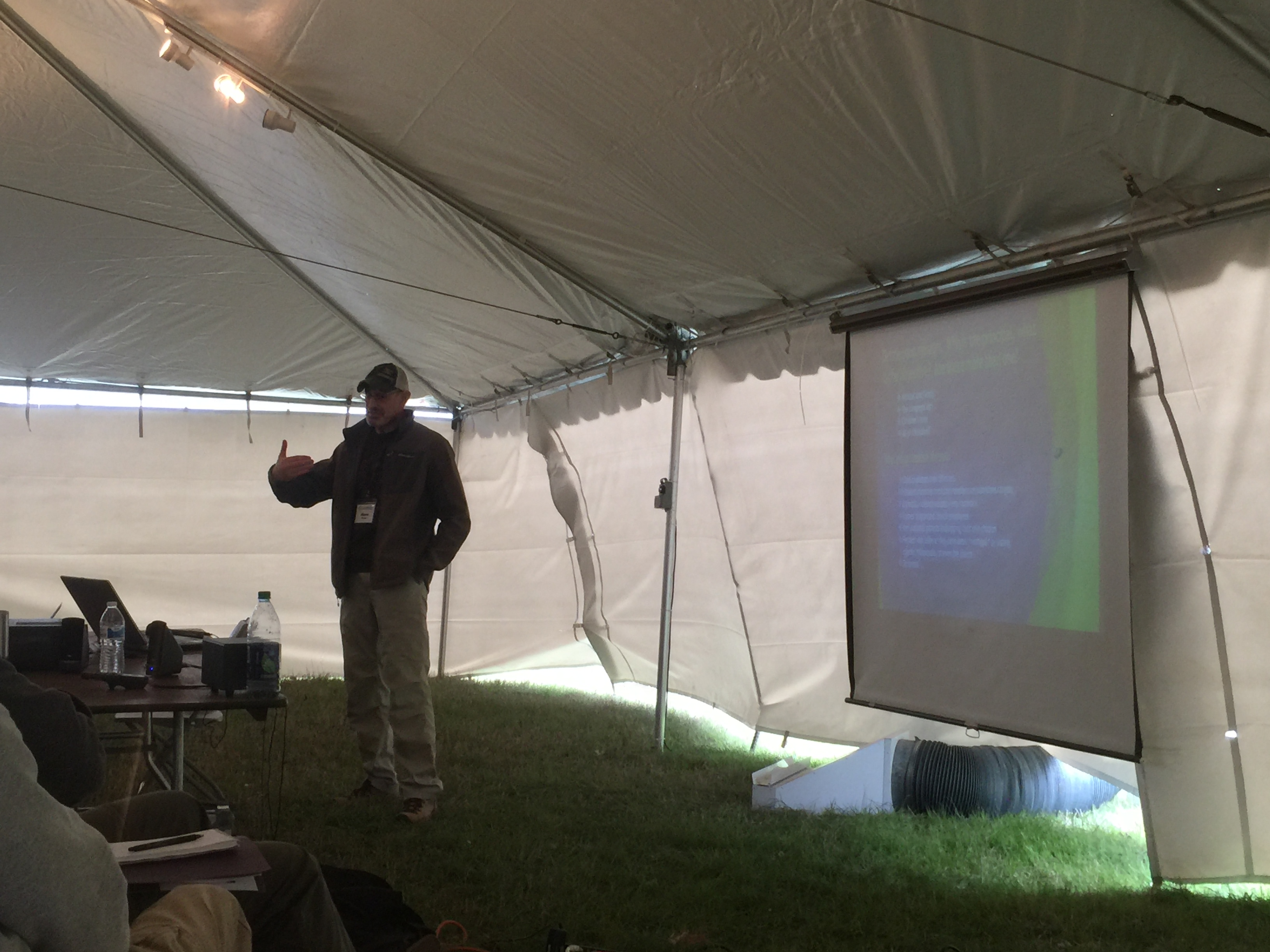 (The classrooms at DARC were large outdoor event tents. Many of the photos show the presenter in shadow due to the lighting conditions inside the tent during the presentation.)