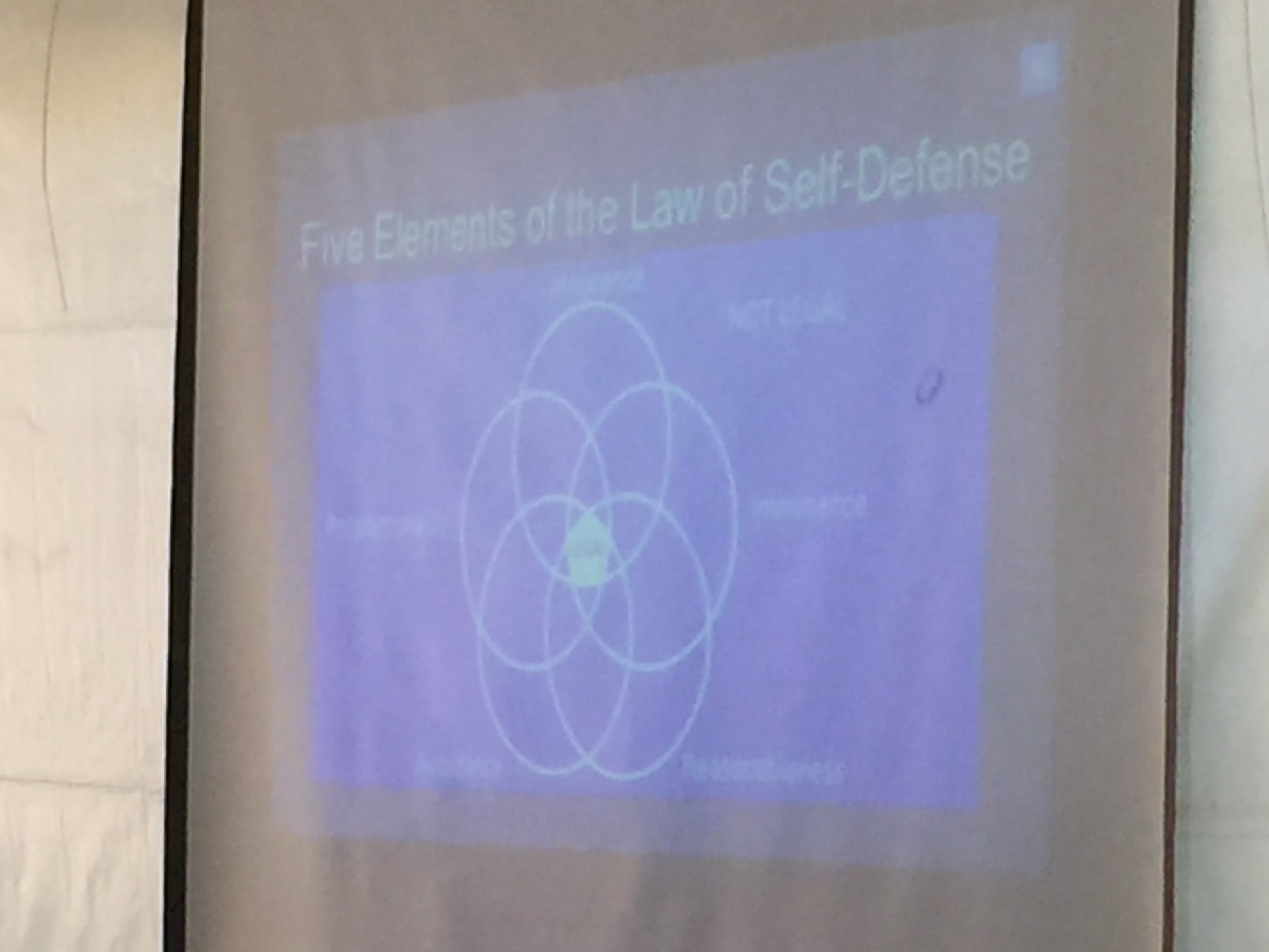 The final talk I attended on Saturday was Andrew Branca’s “Law of Self Defense”. His talk connected well with Manny’s, as both discussed scenarios, use of force issues and legal concerns. Andrew’s talk was drawn from material in his courses and from his book.