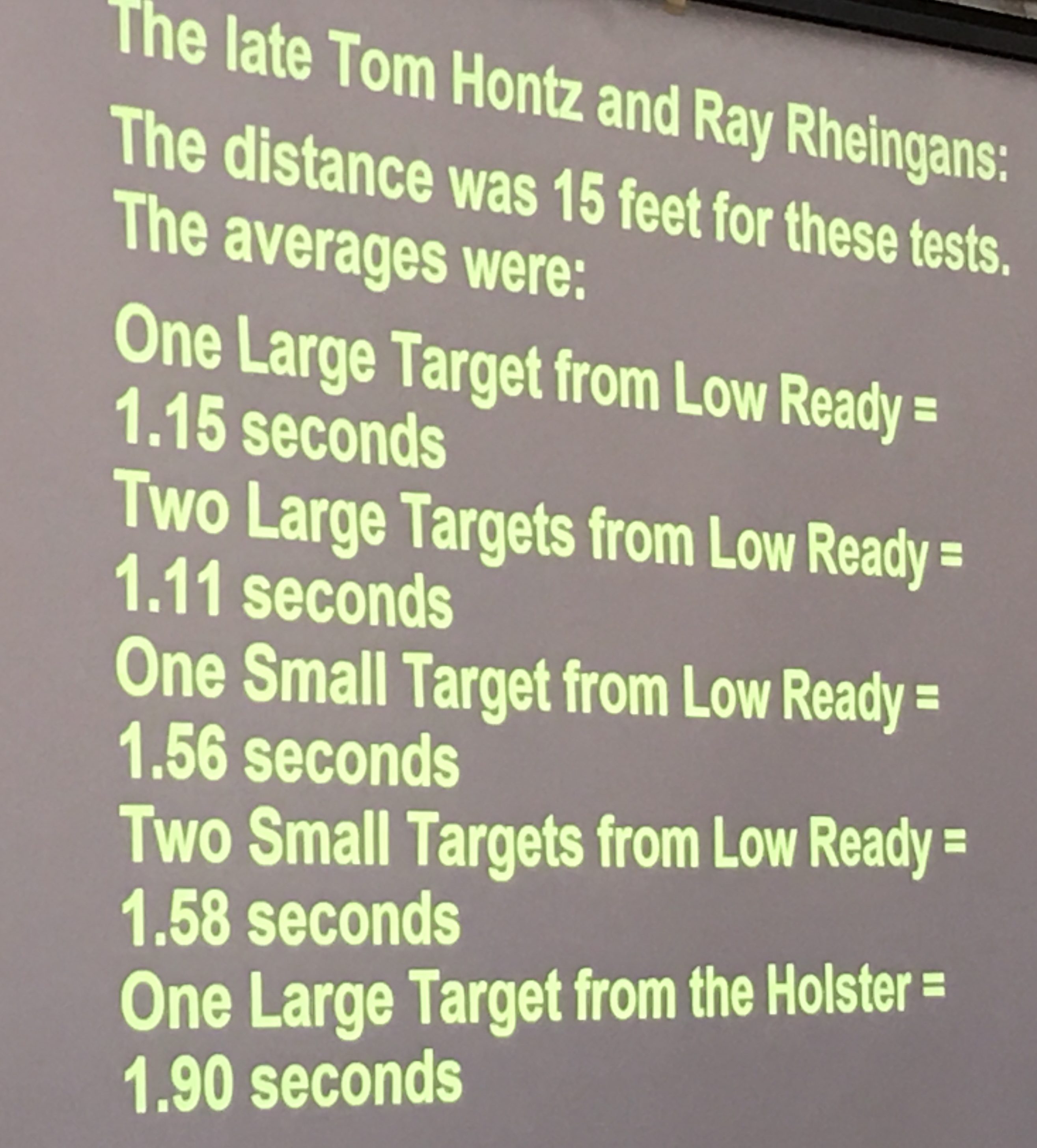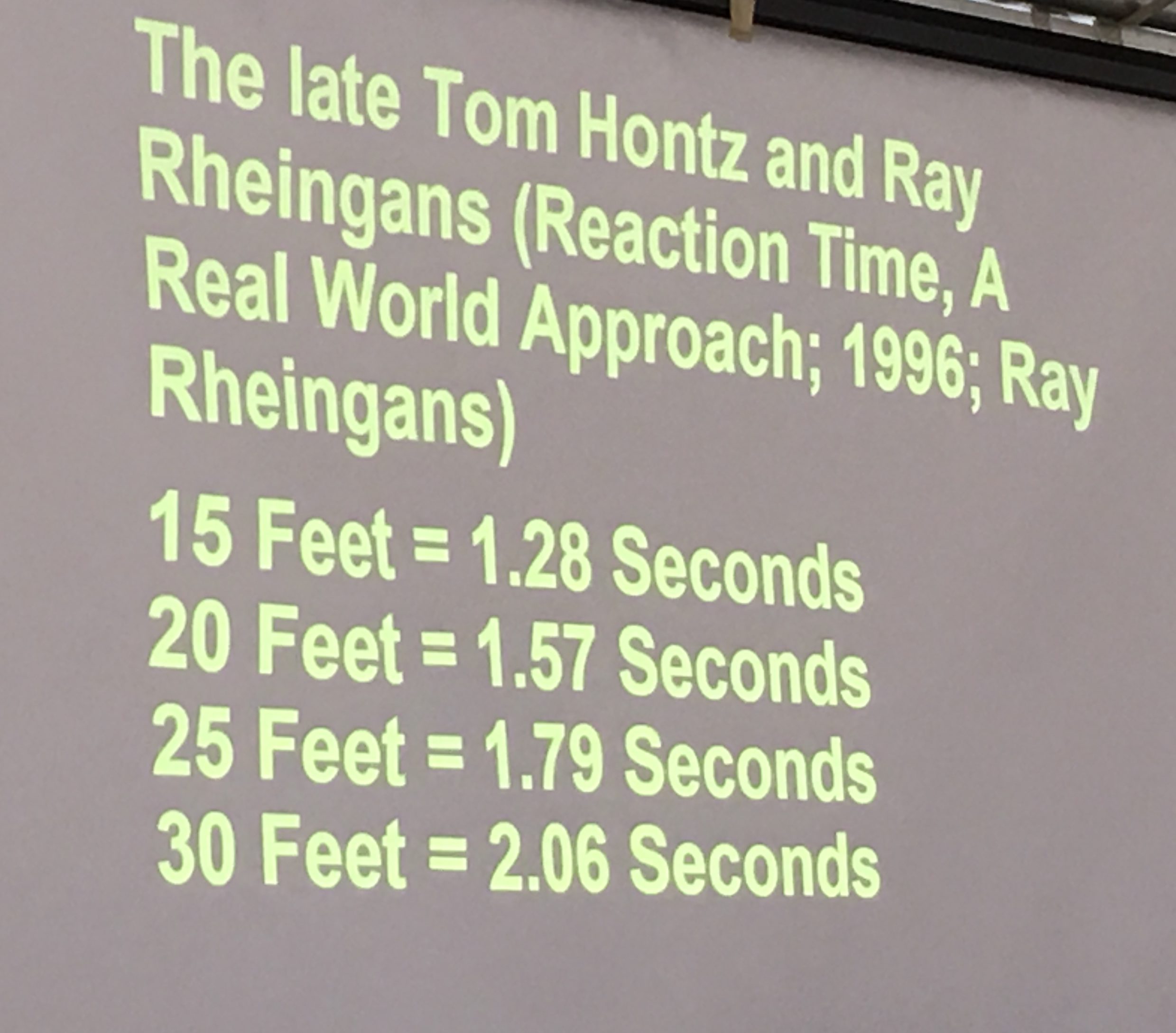 Kevin Davis presented on Officer-Involved Shootings, sharing research into reaction time vs. distance, discussing mindset and other related topics.