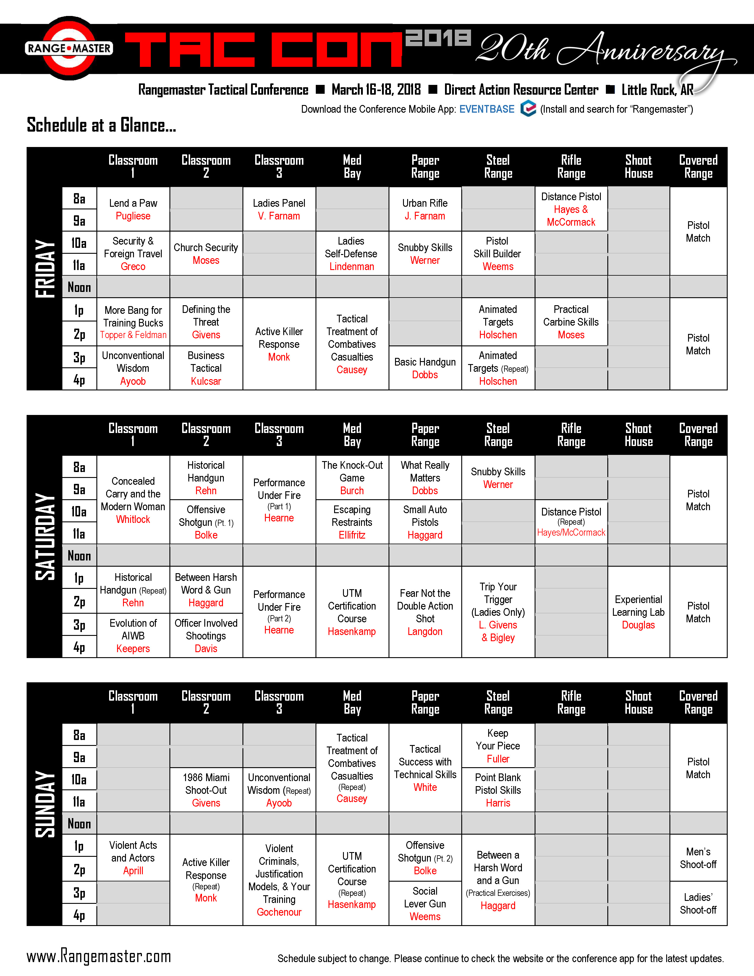 From March 16-18, 2018, several of us from the KR Training team (myself, Dave Reichek, and Tracy Becker) attended the 20th annual Rangemaster Tactical Conference, held at the Direct Action Resource Center near Little Rock, Arkansas. This is part 3 of a series of posts about sessions I attended and taught, the match and products I evaluated as part of the conference.