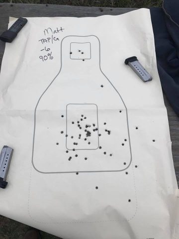 We did get out on the range after lunch on day 1, shooting 2″ circle targets, concentrating on techniques and trigger control, to set a foundation for the drills that followed on the next day.