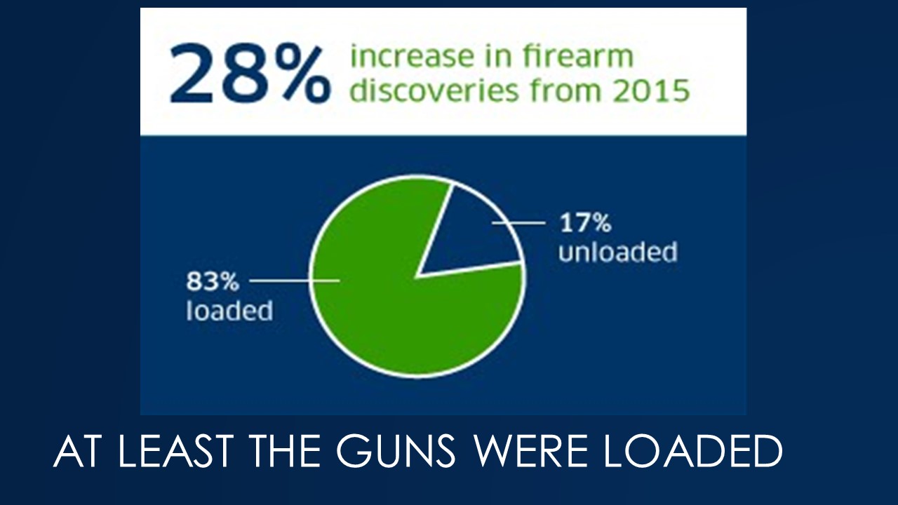 Both of my college degrees are in engineering, and I spent 23 years working in military R&D, so I like data. My first task was to try to find answers to basic questions. The TSA does a good job of tracking and reporting on firearms discovered at checkpoints. That’s an interesting statistic because it’s tied to the number of people carrying, and even what guns they are carrying and how they are carrying them.