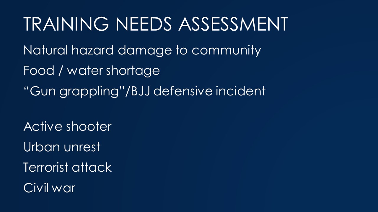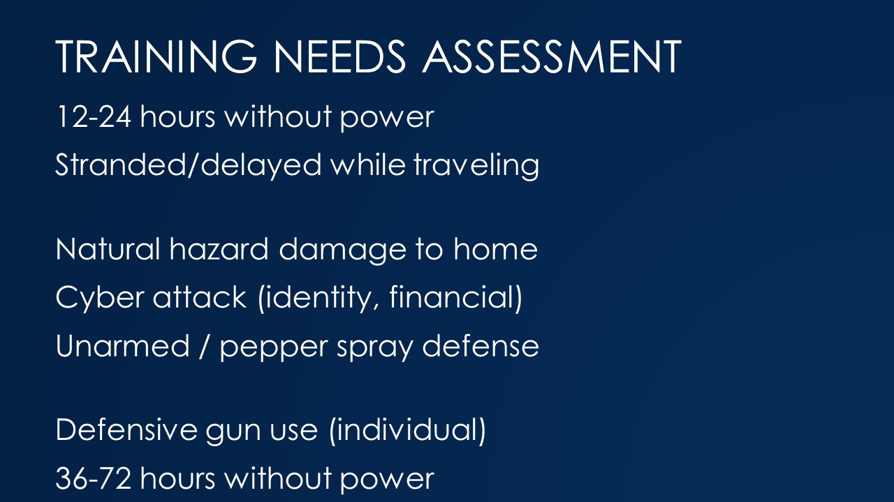 In this section I discuss how to do a realistic all-hazards risk assessment and derive a training needs assessment from that.