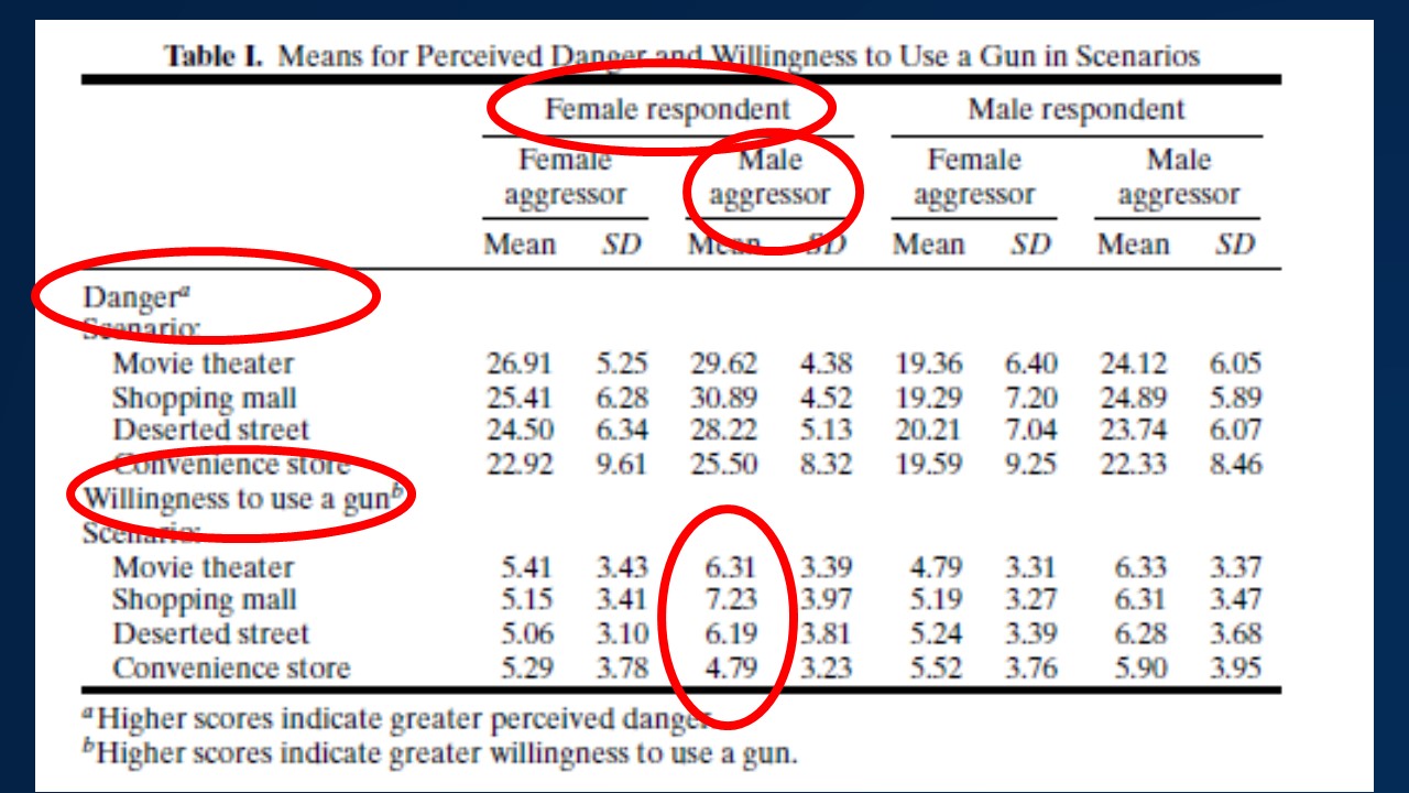 One example: this data on willingness to use a gun in self-defense. The highest numbers on the chart are for women against a male aggressor. That’s a change from what was the “conventional wisdom” that women are less likely to use deadly force in self-defense.