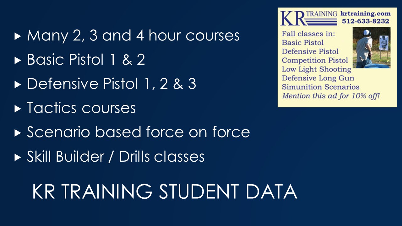 In the 1990s I put a lot of effort into adding content to the KR Training website, but didn’t migrate to other platforms (youtube, blogging) as the trends changed. I did make that migration on the music side, with lots of videos from my own live shows up on youtube, but not as much on the firearms training side.