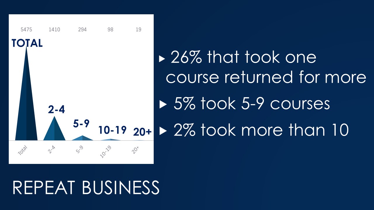 Many people have limited interest. Remember the 99% are only going to do the state minimum and never come to anything else. So the percentages of those returning are not surprising.