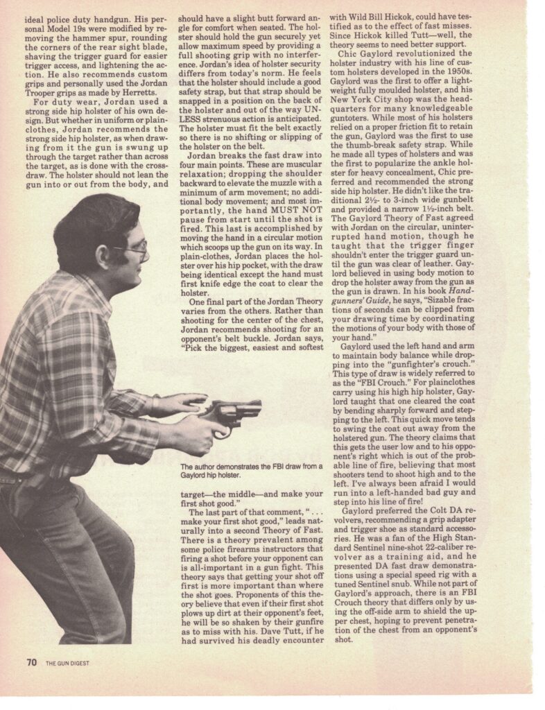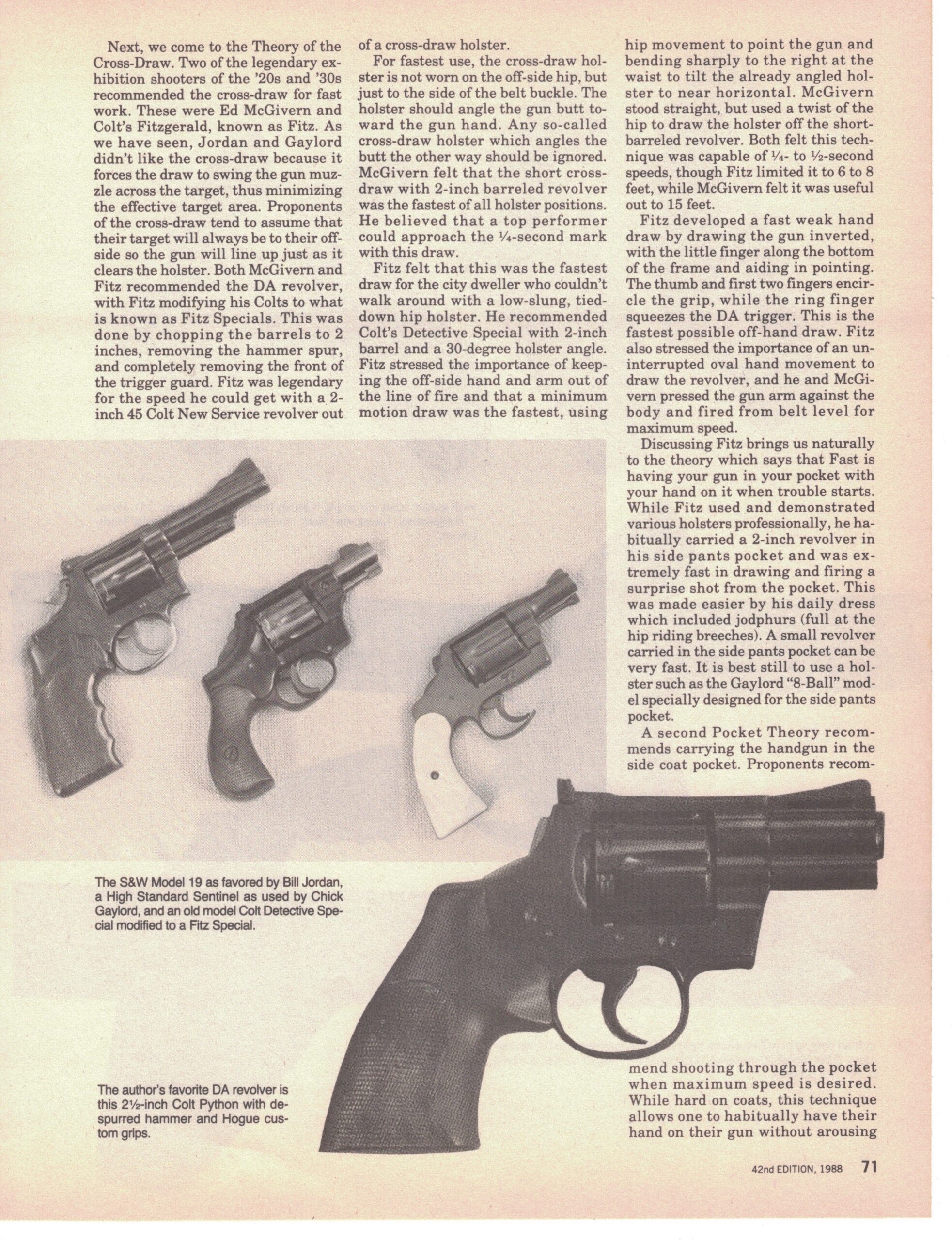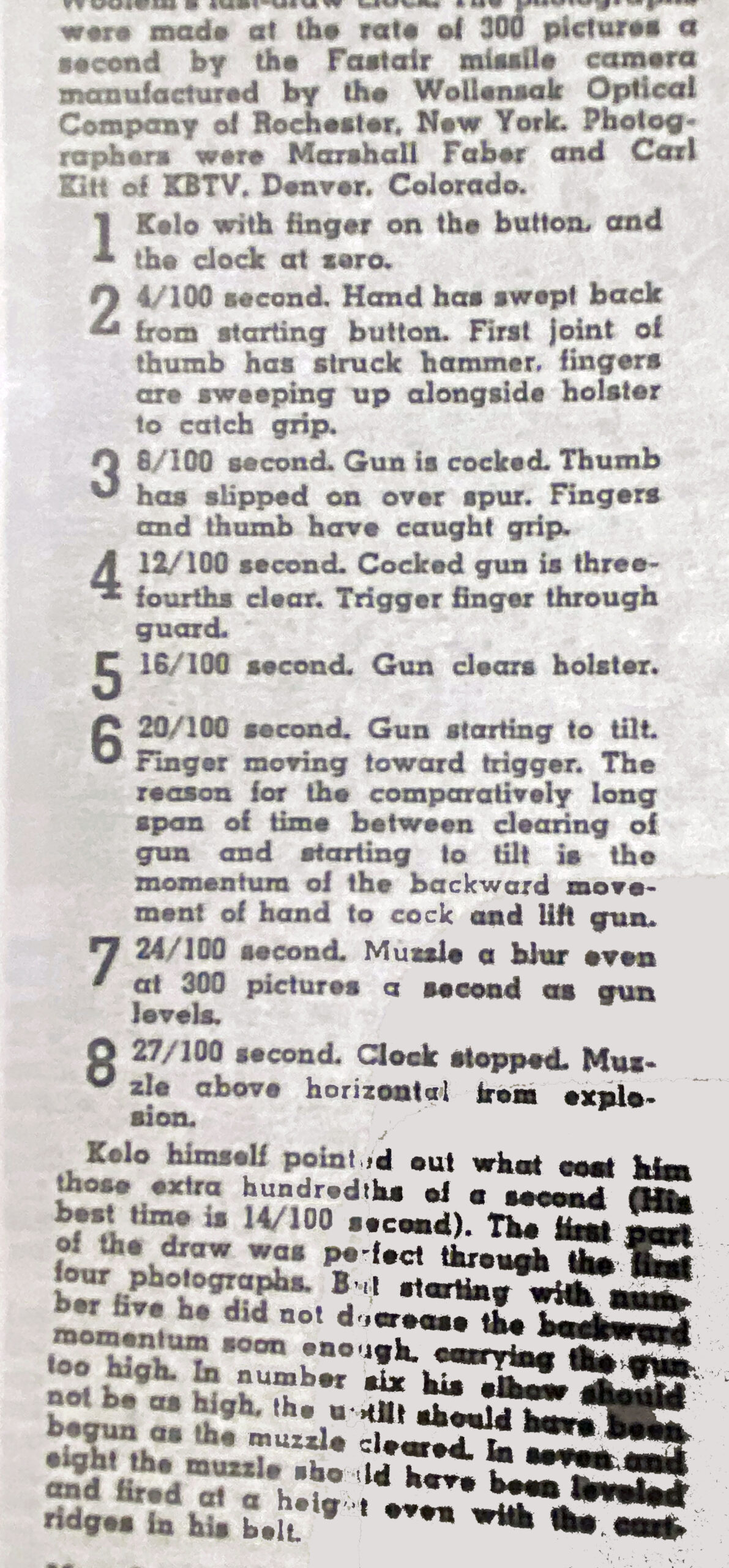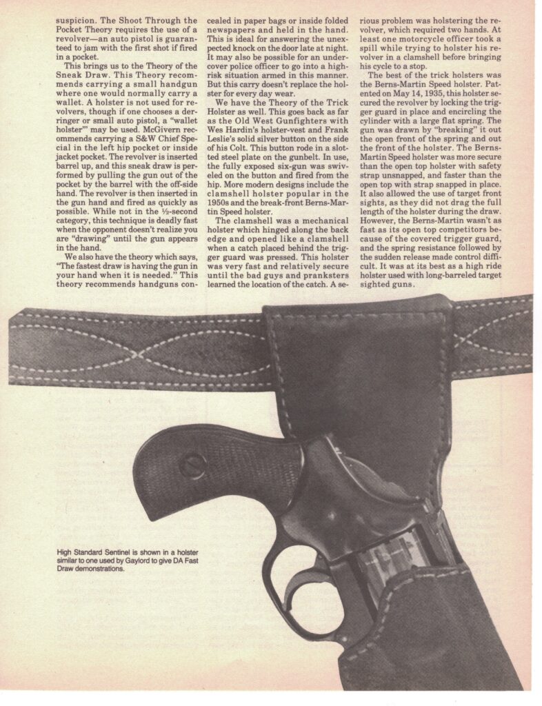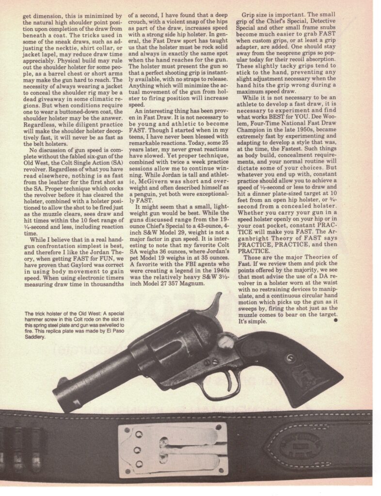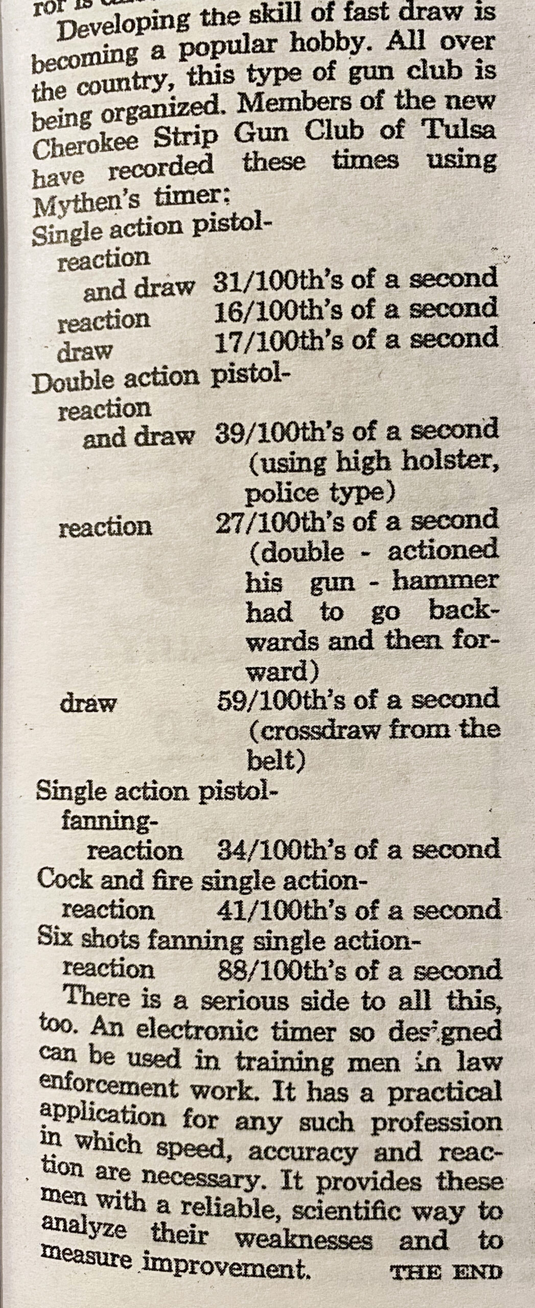 Many early articles focused on the draw speed, similar to the current obsession with the “1 second concealment draw”. Quarter second draw times were the goal of that era.