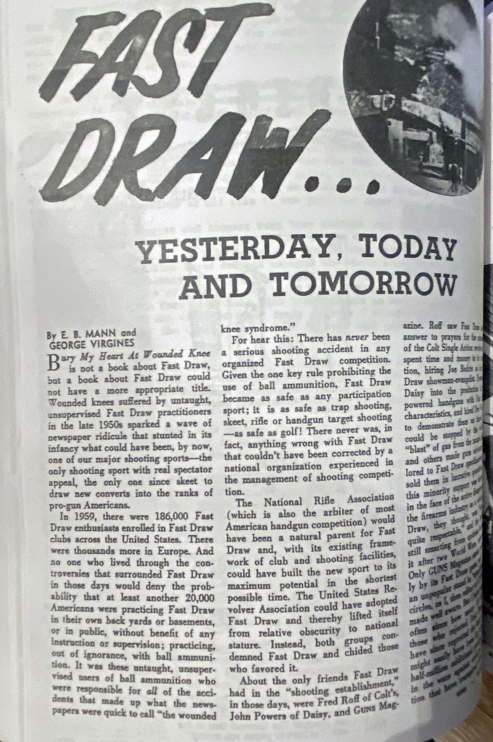 GUNS covered Fast Draw more than any other print publication and many of the articles in Blasgen’s book can be found in the GUNS magazine digital online archive.