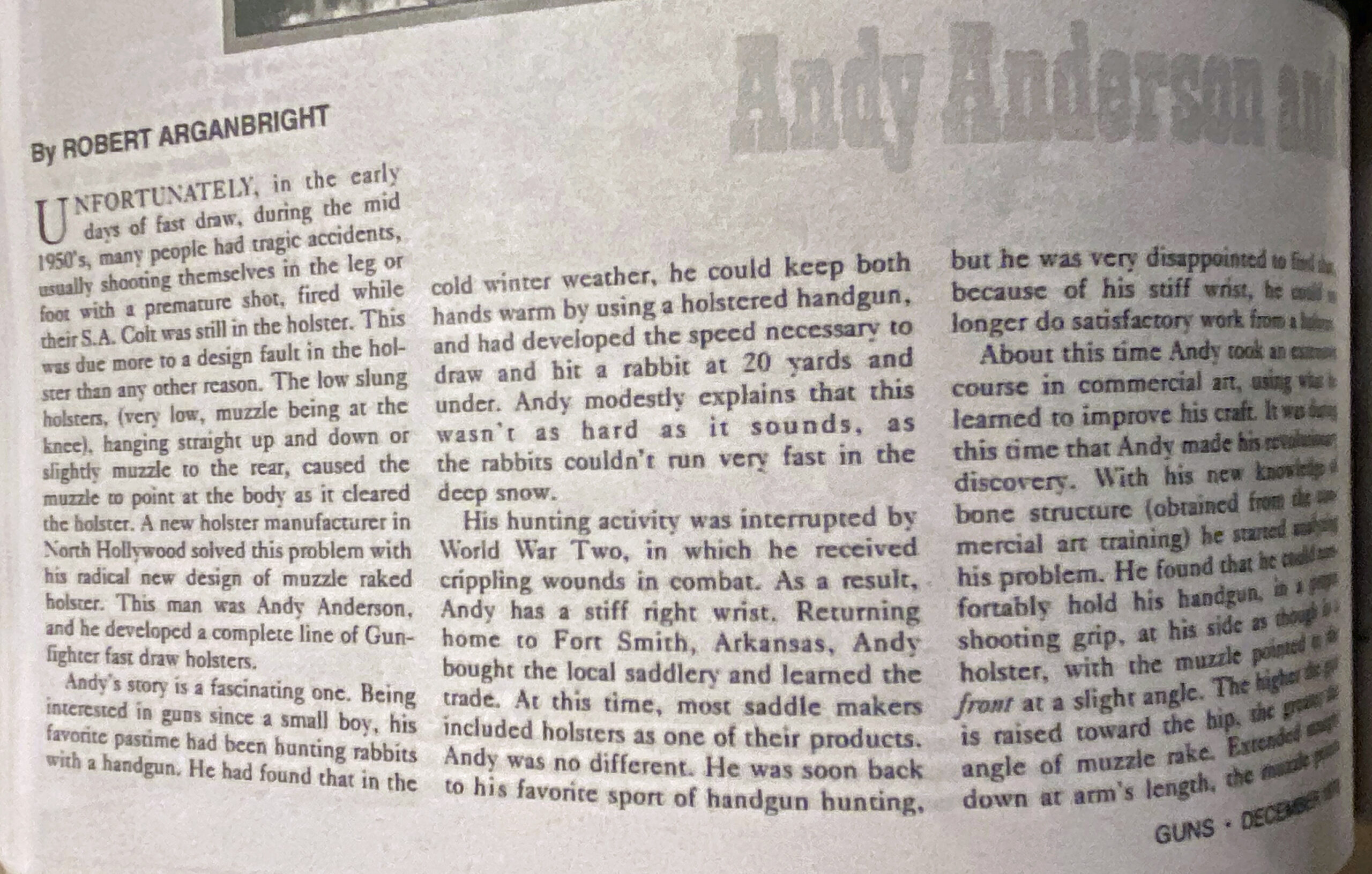 Andy Anderson was another influential holster maker of the Fast Draw era.
