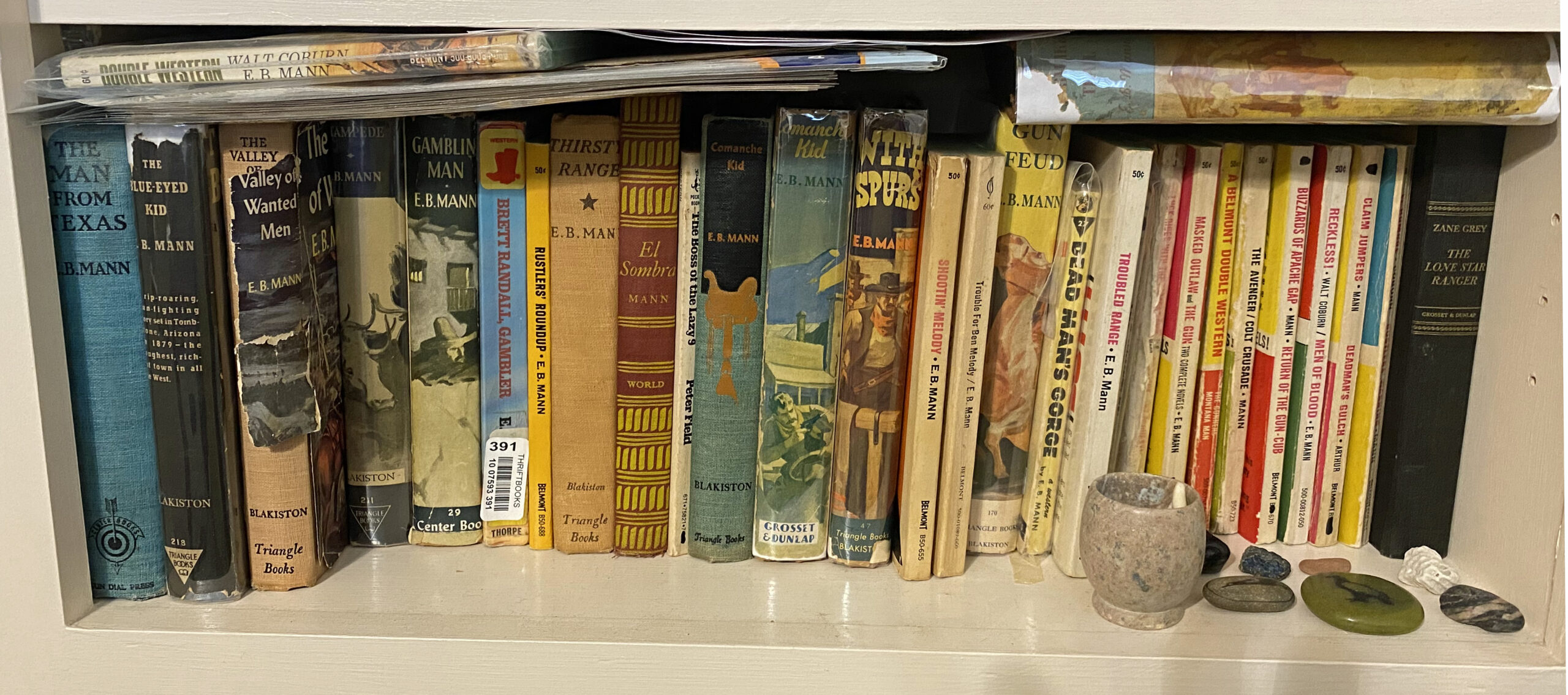 E.B. Mann was a writer of Western pulp stories and paperback books, who also wrote for gun magazines, and was the champion of Fast Draw at GUNS magazine. In addition to collecting books on guns, I enjoy reading and collecting Western fiction books and pulp magazines. E.B.Mann is one of my favorite authors and over the past few decades I’ve found hardback, paperback, and pulp magazine copies of most of his works.