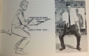 As is common with all gun books written prior to the Gunsite/Weaver era, the two handed grip techniques shown depict various awkward and mostly ineffective use of the support hand, with that hand placed too low relative to the barrel, or in some variation of “cup and saucer” with the support hand under the grip.