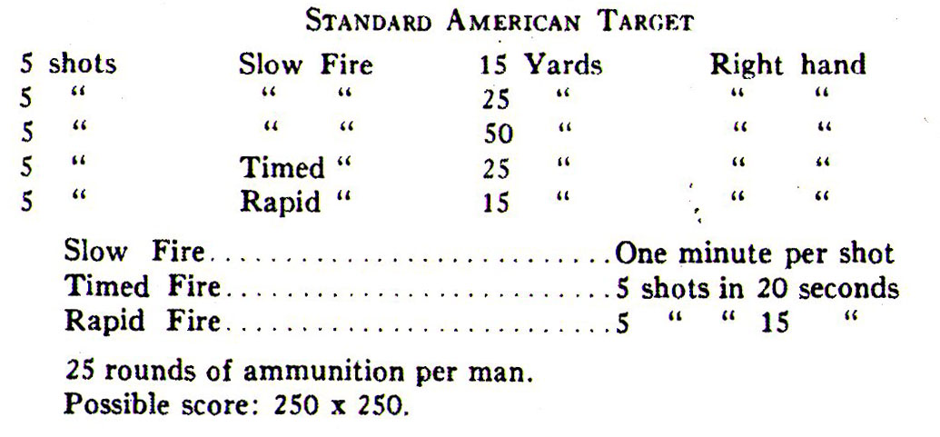 The techniques shown are typical of other books from the 1930’s: one handed bullseye shooting, mostly shot on the Standard American Target (NRA B-6) and the Colt Silhouette (B-21).