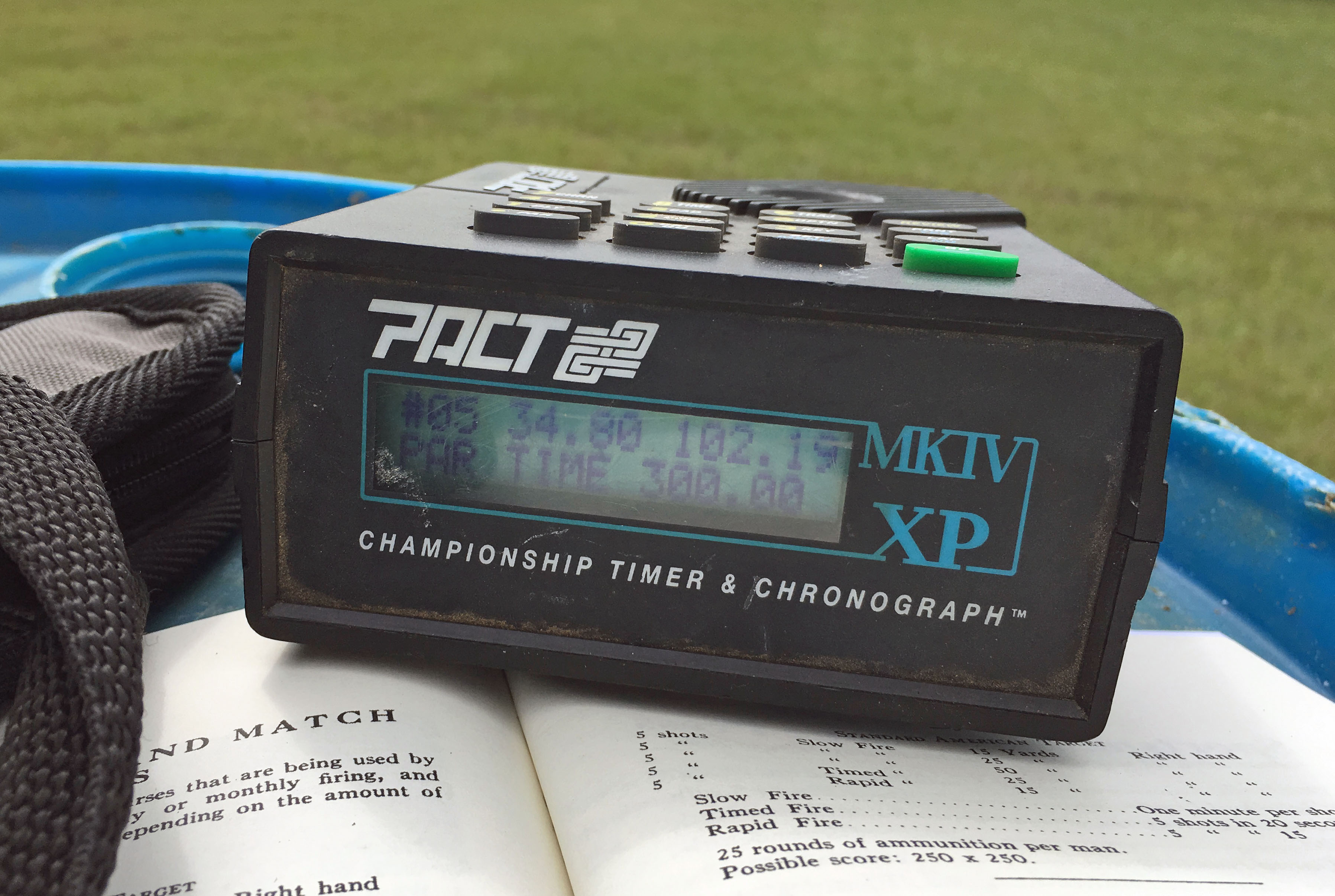 One challenge in shooting these older drills is par times longer than 99 seconds. I had to dig my old PACT timer out of the storage closet, because it could handle the 300 second (5 minute) par time for the slow fire (1 shot per minute) strings. Shooting that slowly is a very different skill from modern training. Going as slowly as I could go, my slowest time for the 300 second par time was just over 100 seconds to fire 5 rounds.