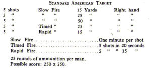 - 25 yards, slow fire (5 rounds in 5 minutes), 2x, right hand only