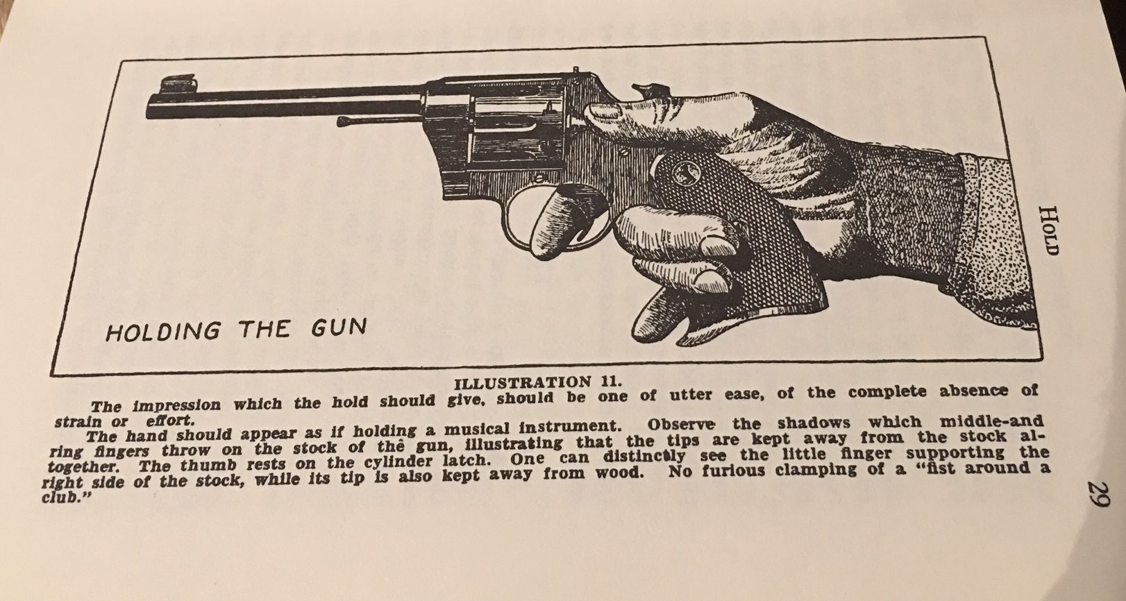 As common in many books from this era, he recommends a light grip on the pistol, because it “tires you less”. Modern courses of fire are timed in seconds and hundredths of seconds; bullseye occurs at much slower pace.