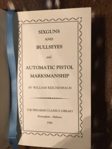In 1935, WW1 veteran William Reichenbach published a book on bullseye shooting called “The Elusive Ten”. In 1936, he updated the book, re-titled “Sixguns and Bullseyes”, following up with “Automatic Pistol Marksmanship” in 1937. The Sixguns book was reprinted in 1943, but the other book was lost to history until it was reprinted, along with Sixguns and Bullseyes, as part of the NRA Firearms Classics Library, in 1996. (Another list of books published in this series is here.)