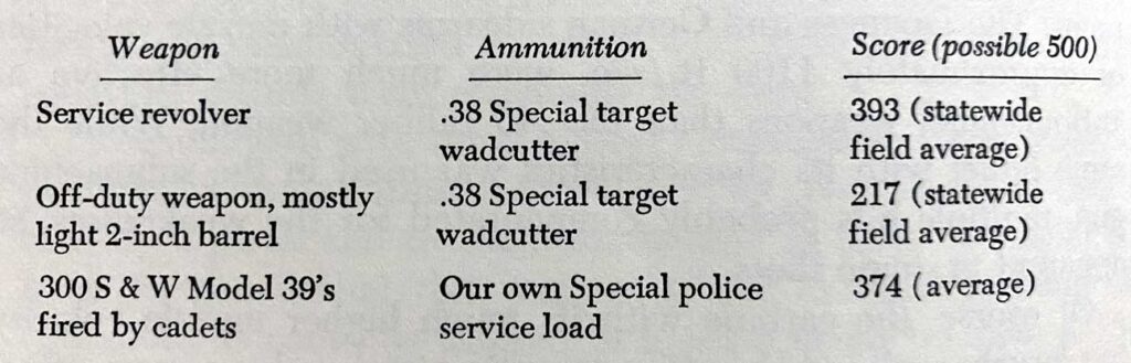 The Illinois State Police switched to the S&W Model 39 DA/SA semiauto in 9mm, and shared their report on the factors behind that decision with Bristow, which he shares in the book. The most interesting aspect of it, to me, was the data included on relative officer performance on their Marksmanship Qualification course with a .38 revolver (full size), a .38 snub revolver, and a Model 39 9mm.
