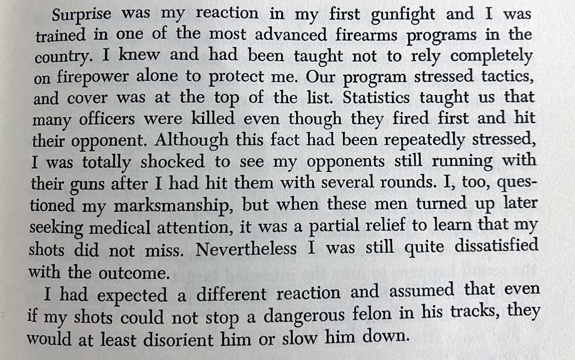 This section opens with a 1969 Law and Order article from Jim Cirillo, who would become famous for his 17 on-duty gunfights. The paragraph below is from Cirillo’s article, and the video from an interview.