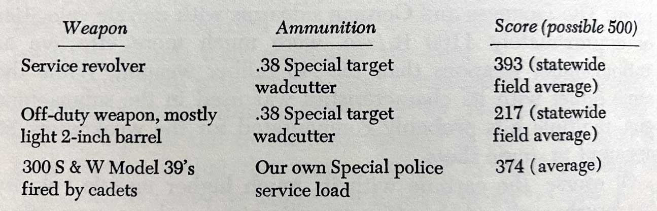 The Illinois State Police switched to the S&W Model 39 DA/SA semiauto in 9mm, and shared their report on the factors behind that decision with Bristow, which he shares in the book. The most interesting aspect of it, to me, was the data included on relative officer performance on their Marksmanship Qualification course with a .38 revolver (full size), a .38 snub revolver, and a Model 39 9mm.