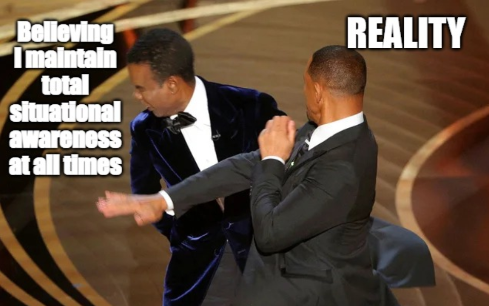 - Some students expressed disappointment during debrief that their situational awareness “failed”. In reality, “complete situational awareness at all times” is a unicorn. It doesn’t exist. To paraphrase Craig, anyone who claims it does lacks real-world experience.
