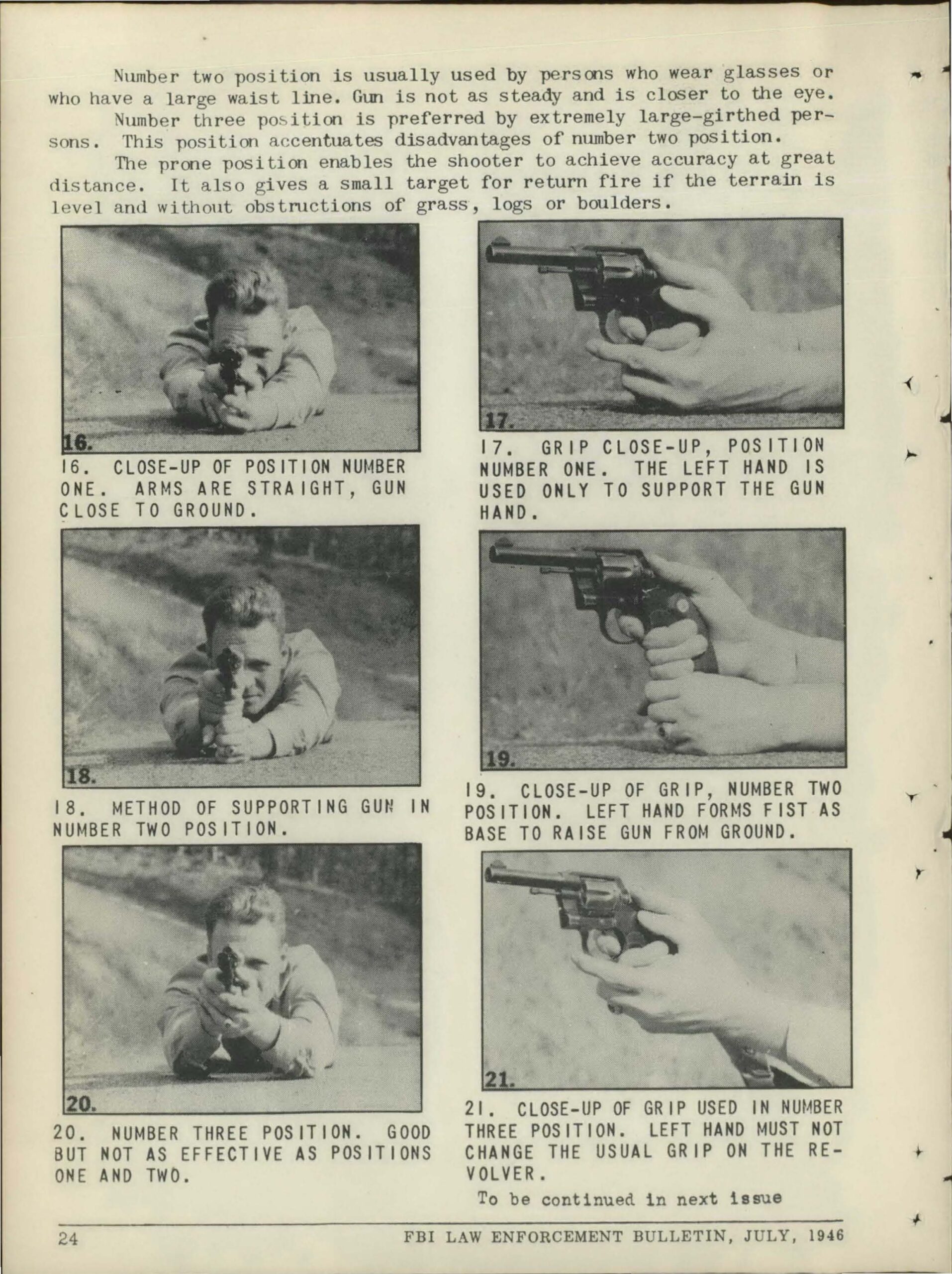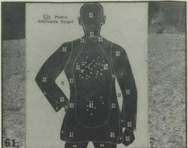 The FBI PPC course was widely used in law enforcement training from the 1940’s through the 1970’s. It’s one of the most difficult, mainly because of the 50 and 60 yard strings, but also because of the hip shooting and loose-rounds revolver reload required at the 7 yard line. The classic target used for the FBI PPC is now called the B-21, and it’s still available for purchase. The course of fire requires a barricade, and an outdoor range where drawing, shooting from prone and hipshooting is allowed. If you are shooting the course of fire with a semiauto pistol, to simulate the loose rounds revolver reload, put loose rounds in your pocket and refill your empty magazine with the loose rounds, on the clock. (This is what the FBI required Jeff Cooper to do in the 1960’s when he was trying to convince them to switch to the 1911.)