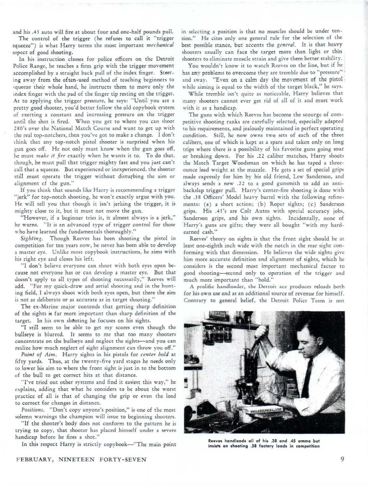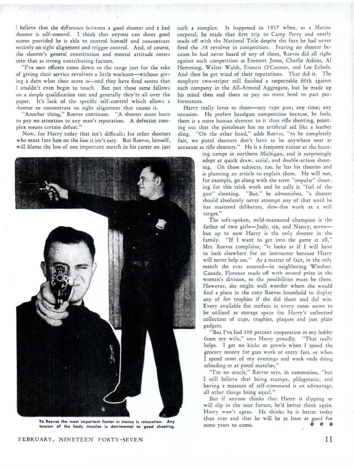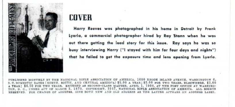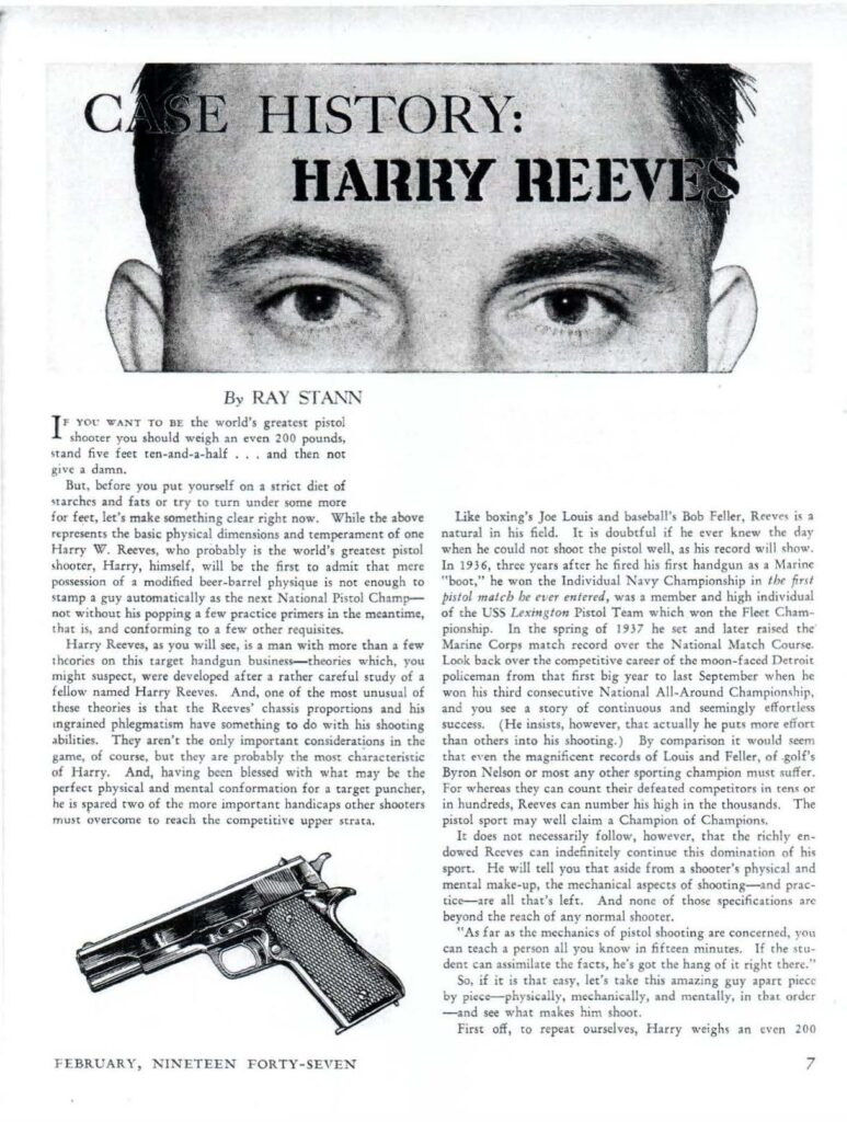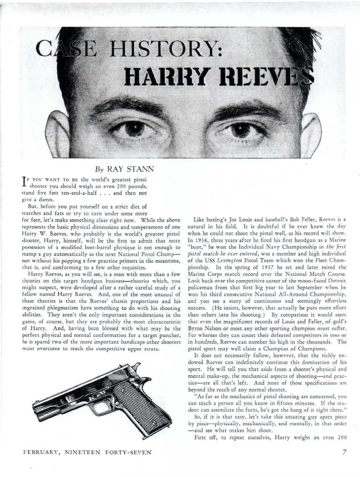 Harry Reeves: Case History (1947) Posted by karlrehn on 21 March 2024, 8:13 pm A 1947 article from the American Rifleman magazine about top shooter Harry Reeves.