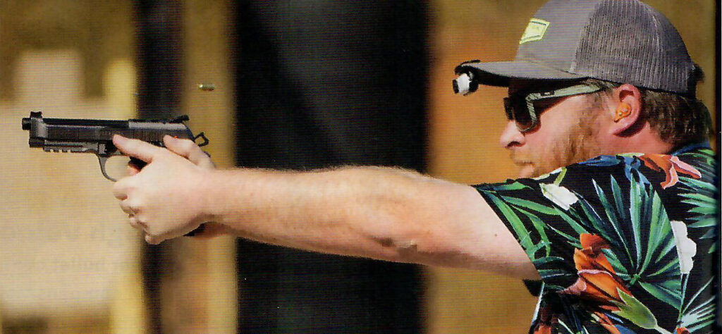 In modern USPSA, 9mm ammo is the most popular, as most competitors are in the Production, Carry Optics, Pistol Caliber Carbine and Limited Optics division. The demand for speed, both in competition and for show-off videos for Instagram and youTube, has led to some shooters trying to speed up their draw (typically on close targets, since you get better video by having the target and shooter in frame), by shooting before full extension of the arms is reached. Less grip strength is required to hold the frame of a 9mm pistol securely enough to prevent “limp-wristing” malfunctions, so those pushing for speed by not extending can get away with it, if the targets are close enough and their grip is strong enough.
