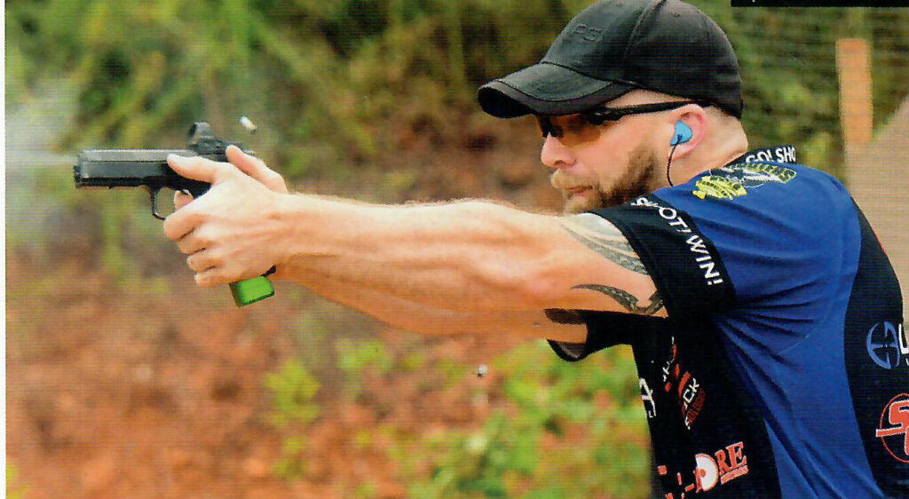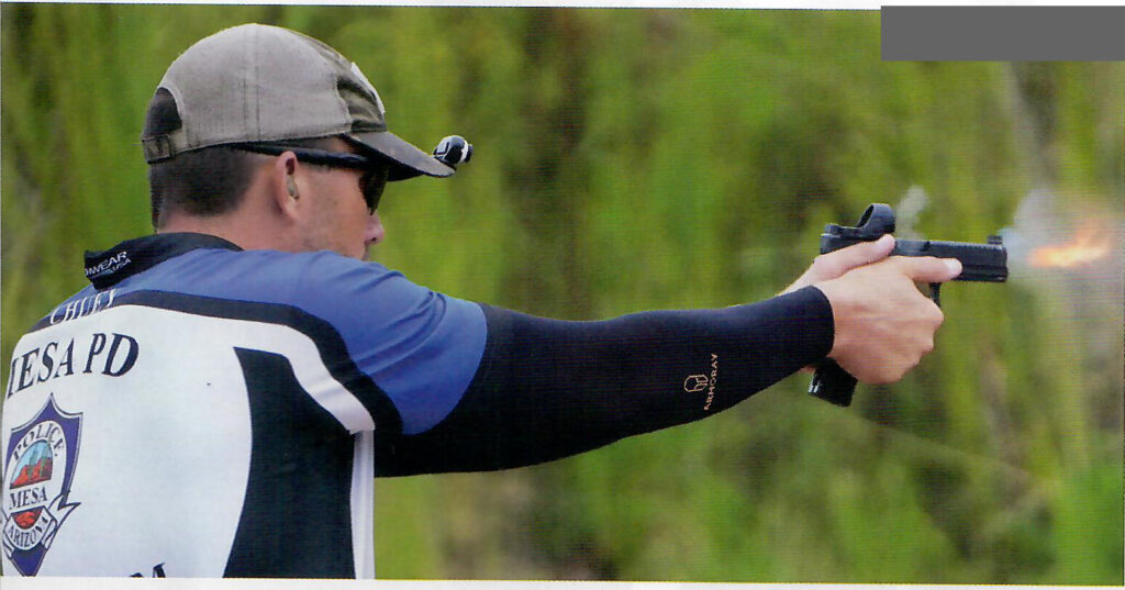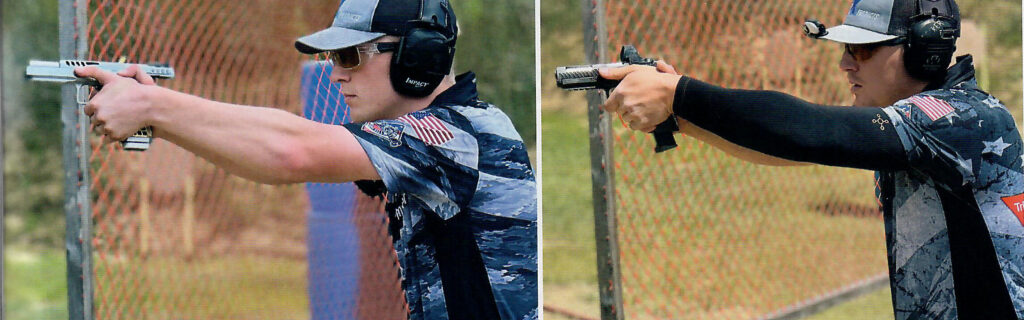 During the 1980’s, the locked elbows Isoceles technique was widely taught (and adopted by former Weaver-technique shooters who discovered that they shot better and faster that way). By the start of the 1990’s, top shooters in USPSA had transitioned to fully extended arms with unlocked elbows, which remains the dominant technique used by top shooters.