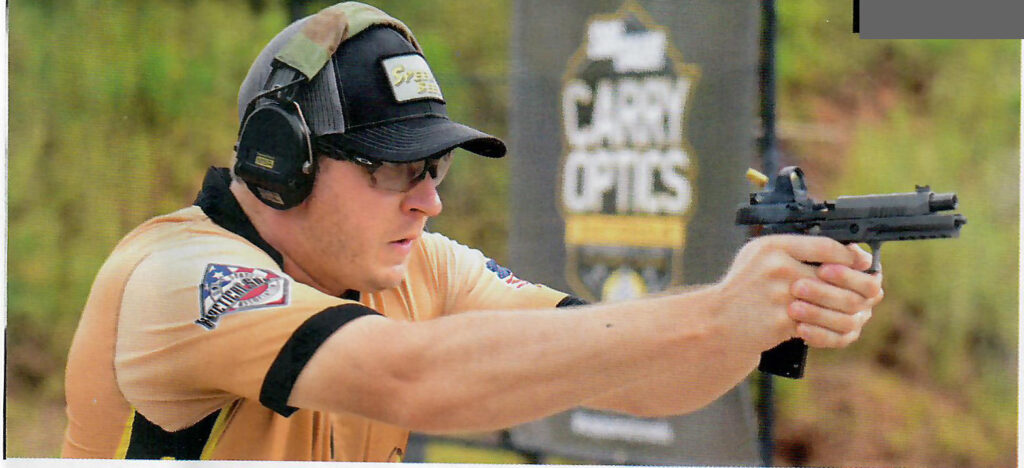 Awhile back the USPSA magazine “Front Sight” (no relation to the now-closed training institute) ran a lot of pictures of top shooters in action from various national championships. There are not people who only shoot 5 yard targets for social media clickbait videos. They are folks that shoot tens of thousands of rounds annually, trying to maximize speed and accuracy to win major matches where the margins of victory are often very small. Thus I think it’s valuable to observe their technique, and note that their arms are fully extended, likely with unlocked elbows. I share a gallery of those pictures here to encourage those that are capable of, but choose not to, fully extend their arms when shooting a pistol to explore that issue more deeply — not just by shooting 7 yard Bill Drills for clickbait content, but by shooting a wide variety of drills, from 3-25 yards, with target transitions, movement and other tasks incorporated.