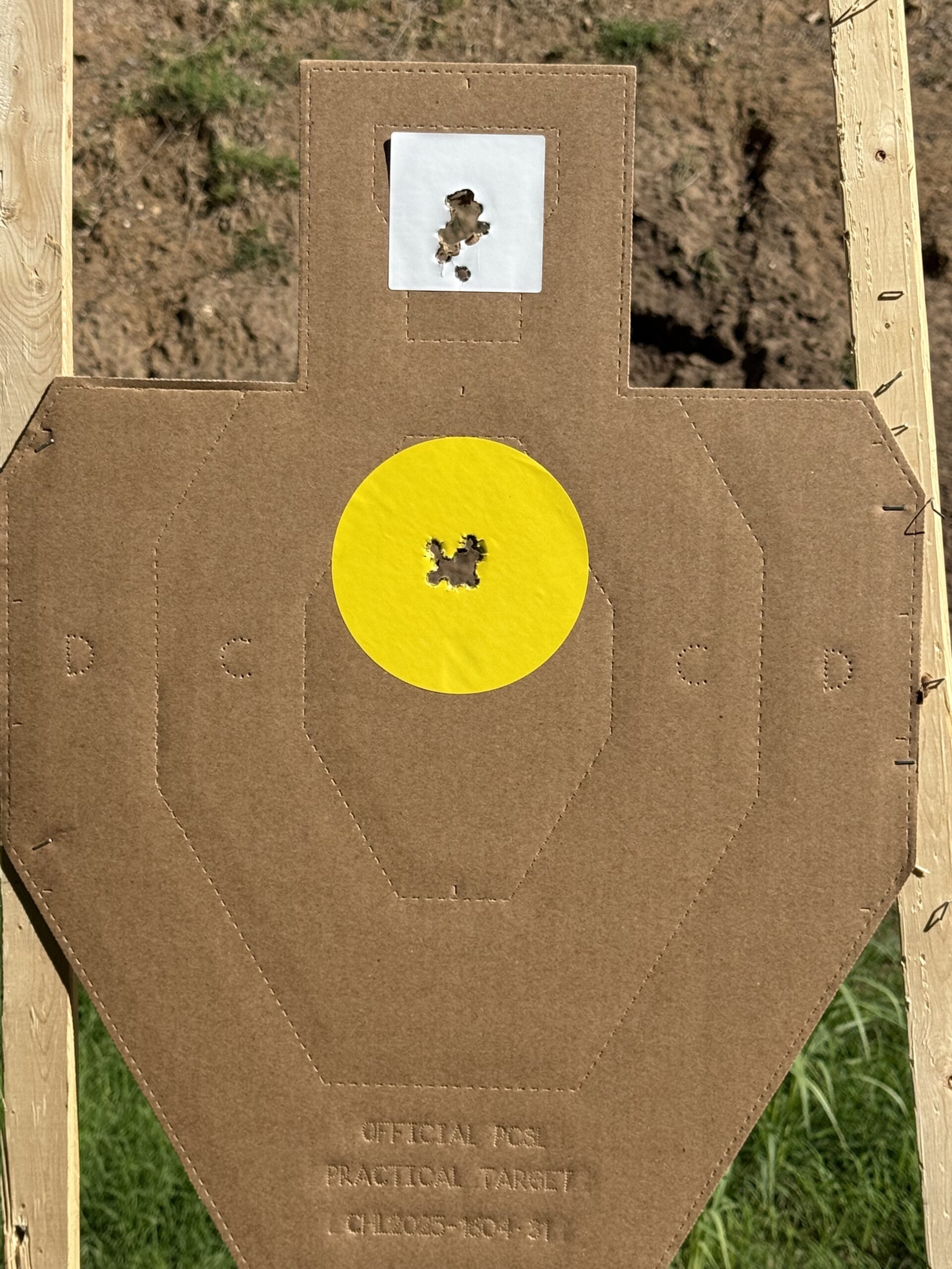 Eric “Clark” Victorin attended and passed the Gunsite Pistol Instructor course in April. Tracy Thronburg took a revolver class from Wayne Dobbs at the Dallas Pistol Club (sample target below).