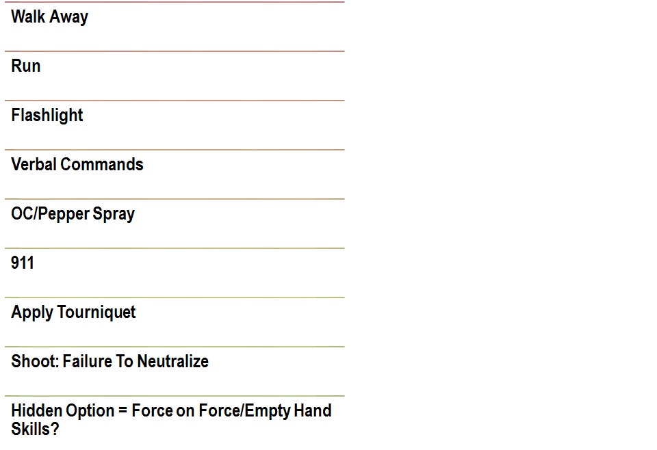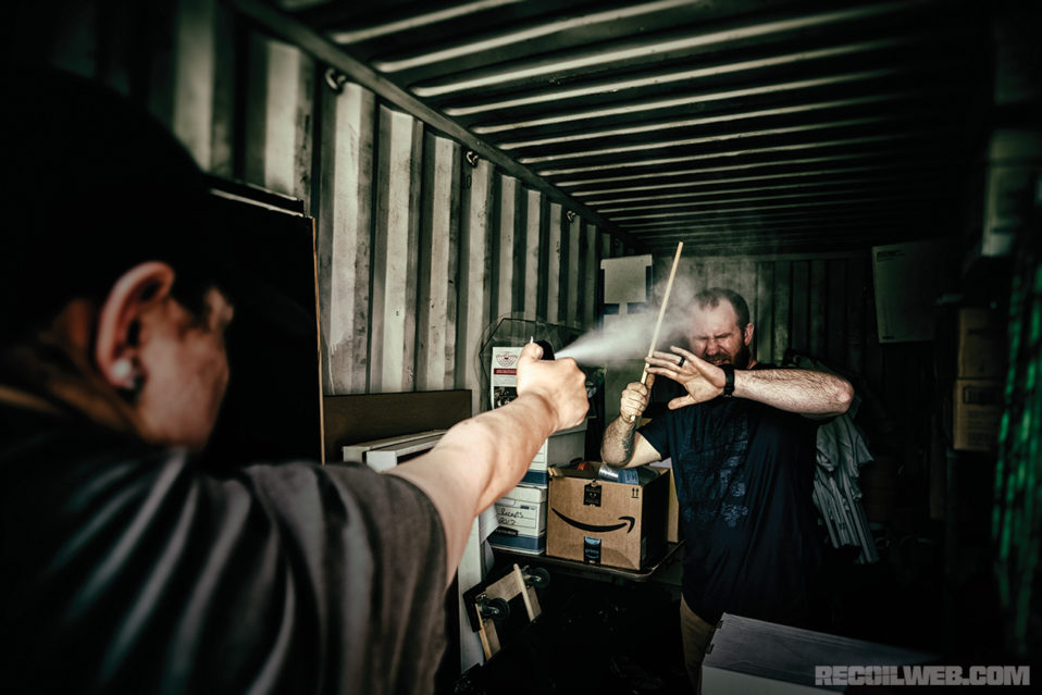 Personal Tactics Skills teaches situational decision making, pepper spray and tactics for specific common personal defense situations. There is more to successful defense than “have a gun”. This indoor lecture course includes interactive scenarios with inert pepper sprays and non-firing replica guns. The Personal Tactics Skills class is a required class for those wanting to earn their KR Training Defensive Pistol Skills Program challenge coin. Students often ignore this valuable course until it’s the last one they need to finish the program: it’s actually designed to be one of the first courses students should take, since good decision making under stress may prevent the need to use a firearm or give the student an important tactical advantage should use of force or deadly force be required.