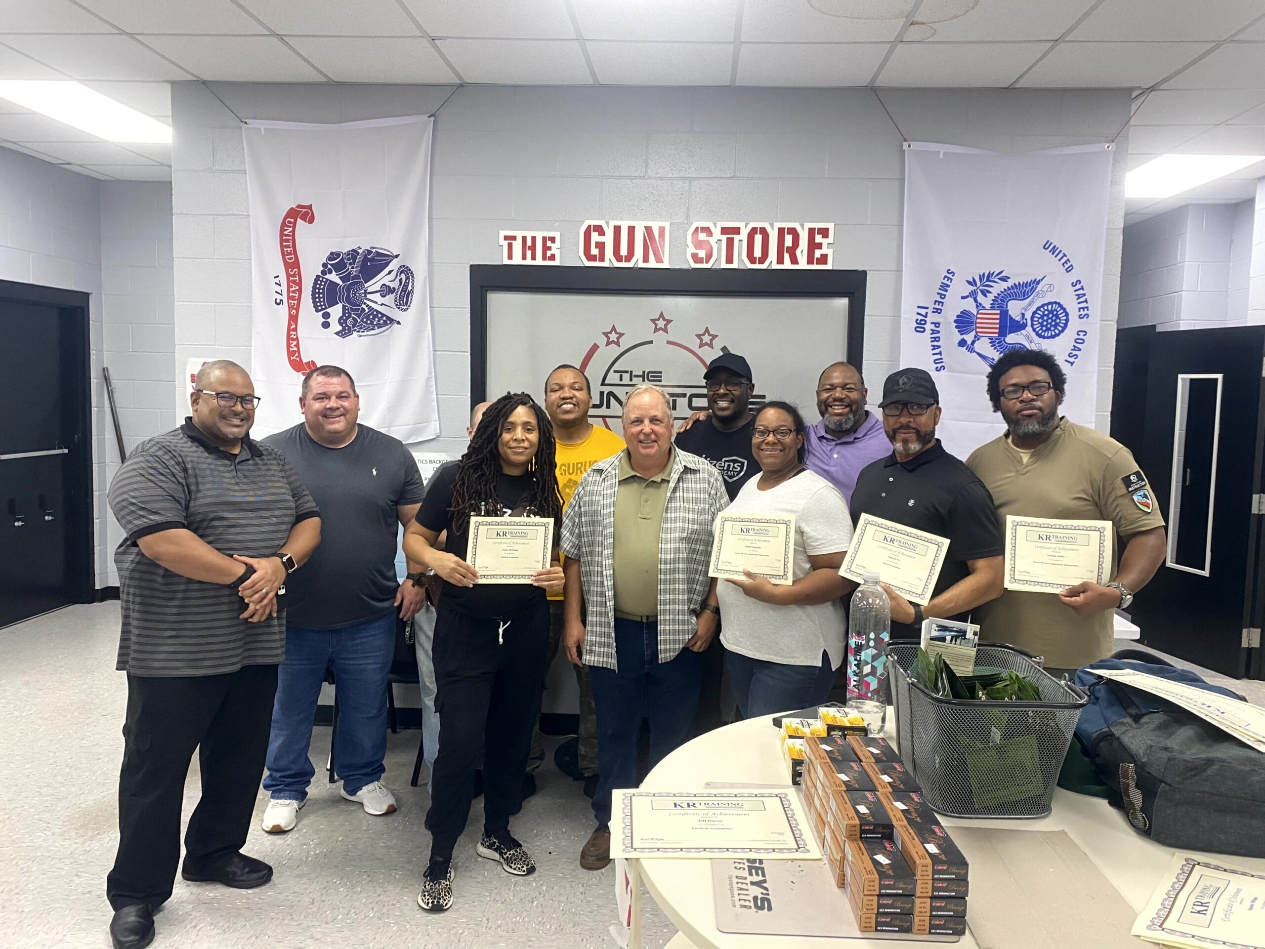 The Defensive Pistol Skills 3 class is the highest level live fire course required for our Defensive Pistol Skills Program challenge coin. Graduation from DPS-2 is required to attend. DPS-3 includes shooting and written tests, and graduates also earn an NRA CCW program certificate. Russell S, in the picture below, recently completed all the coursework and earned his challenge coin. If you have passed DPS-2 and haven’t taken DPS-3 yet, we only offer the course 1-2 times a year, and cool fall weather is a great time to attend!
