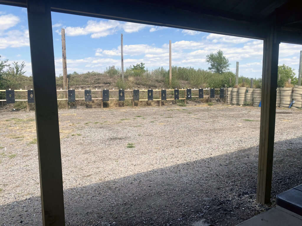 The nice folks that run Nebraska Shooters invited me to come teach three classes at their facility in September 2023. I taught my Force on Force Instructor course, a full day of Tactical Scenarios, and a full day of Advanced Handgun. Nebraska Shooters is run by Justin and Dorothy Grusing, supported by a large crew of assistants, offering everything from beginner classes and carry permit courses to NRA instructor training and all kinds of defensive firearms training. Justin and Dorothy were terrific course hosts and I really enjoyed my time training with them. I was busy teaching during the training days, but I did take some pictures and a few videos of the facility and some of the cool range props they had.