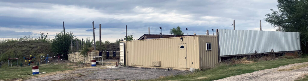They have a very clever indoor-outdoor range setup. The tan conex box is open on the other side, providing a handful of covered firing points. Other conex boxes connected to the tan one run at right angles, and when the back doors of those Conex boxes are opened, they allow rounds fired through the conex boxes to impact in a berm. With the doors closed it can be used for airgun shooting in colder weather.
