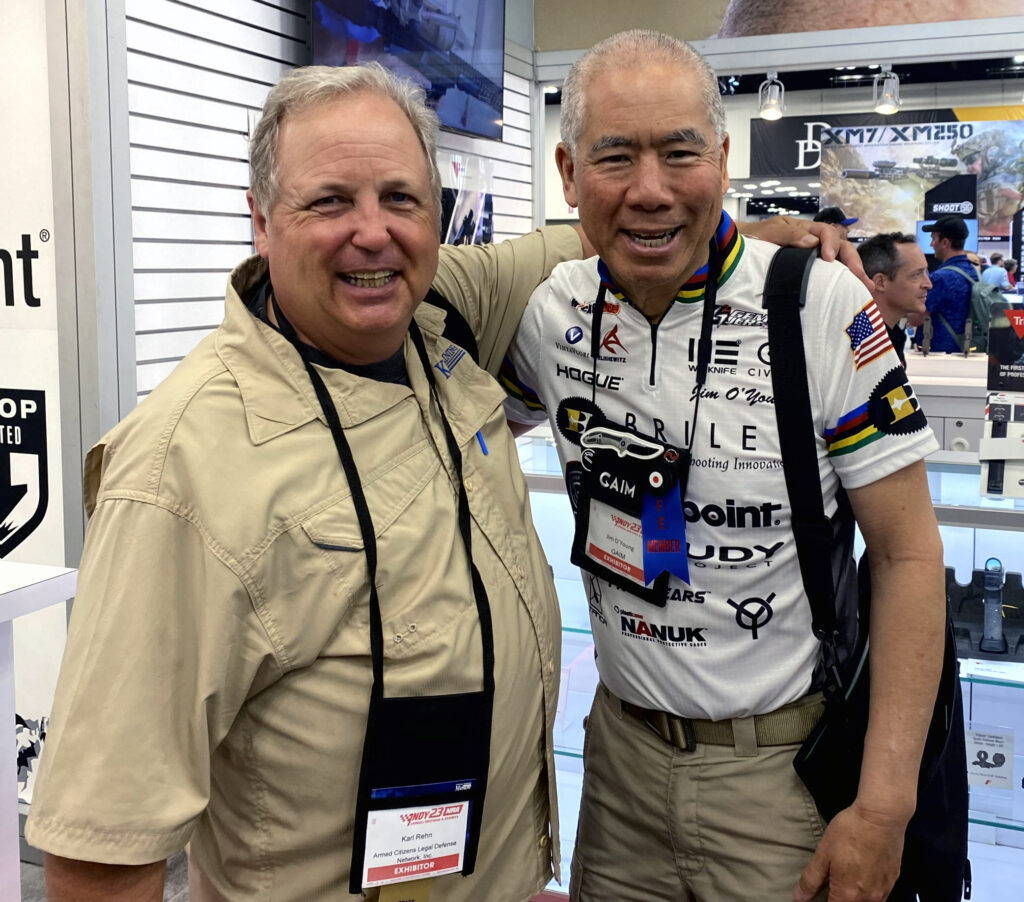I ran into Steel Challenge shooter Jim O’Young. In the 1990’s Penny and I made many trips to Piru, California to shoot the Steel Challenge World Speed Shooting Championships. Jim was one of the regulars from that area that we met during those trips. He’s currently working with a company that is making an Oculus-based shooting simulator.