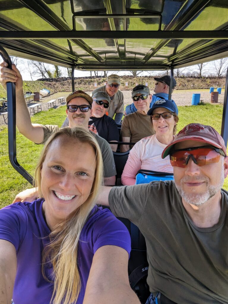 They have a 9 person golf cart that was used to transport people from the parking area to the range.