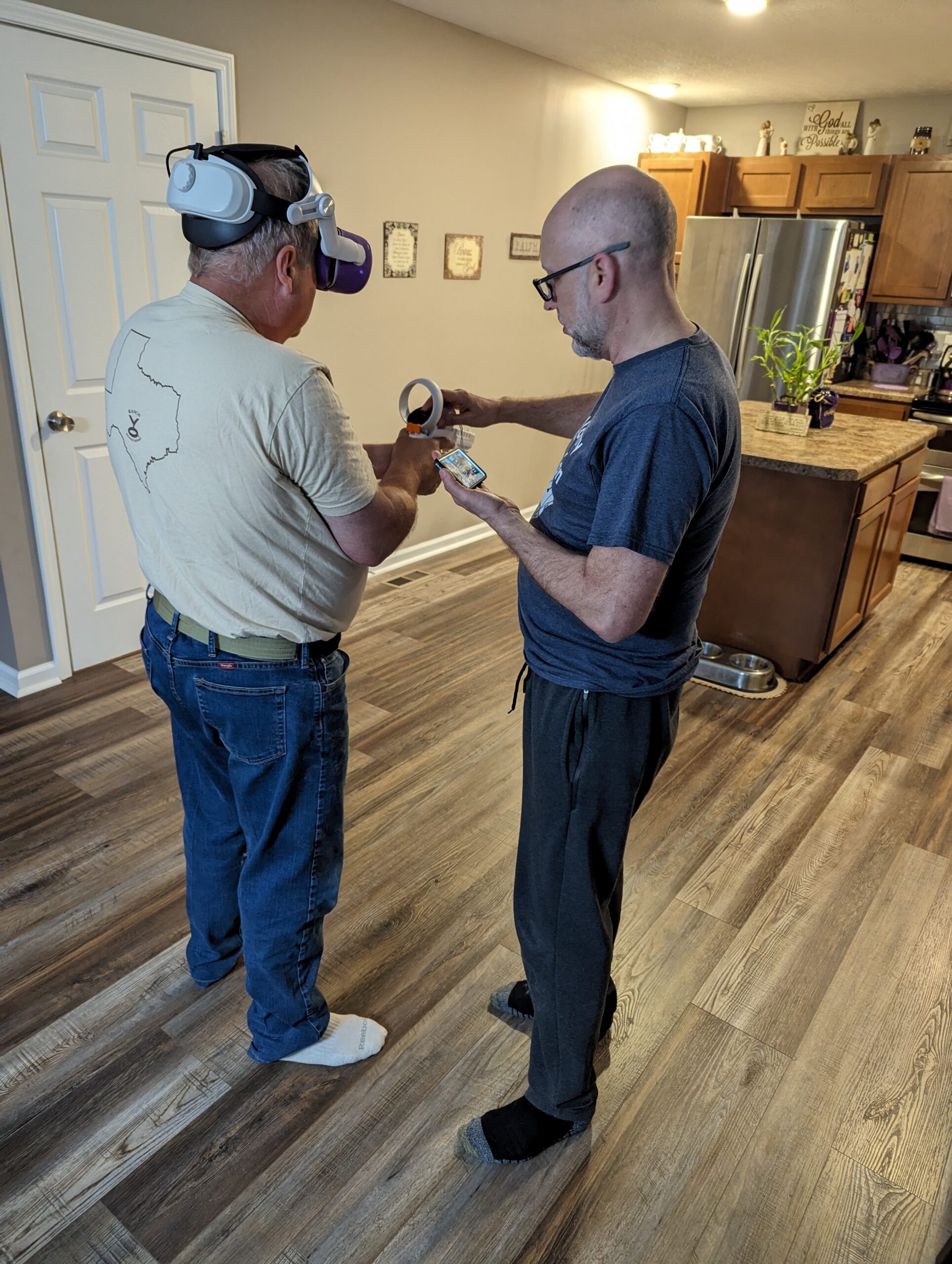 I also got to play with their Ace shooting gadget that works with the Occulus VR headset. Here’s a video capture of me playing with it, with some still pics of me using it.