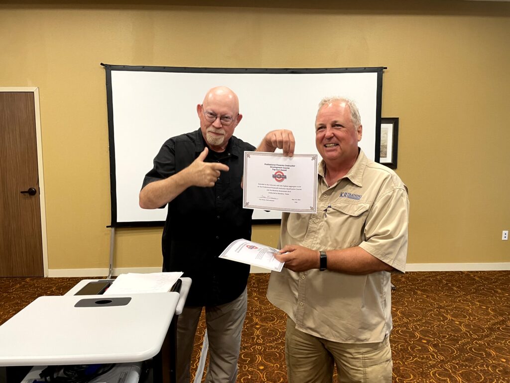 In late May 2024 I attended a 3 day Professional Pistolcraft Instructor course taught by Tom Givens of Rangemaster. This was Tom’s 4th level instructor course, intended for those that had passed his Master Instructor class in the past. After 50 years as a trainer, and a student of the history of handgun instruction, Tom has a lot of knowledge to pass down – thus his development of this 4th level class.