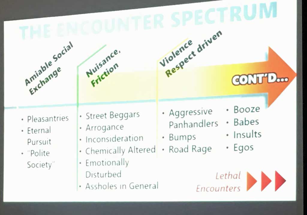 I attended the 4 hour lecture part of John Murphy’s “CCW Skills Beyond the Gun” session. KR Training will be hosting John for two 1-day courses in February 2019. John is a very entertaining, engaging presenter and his class was full of excellent content.