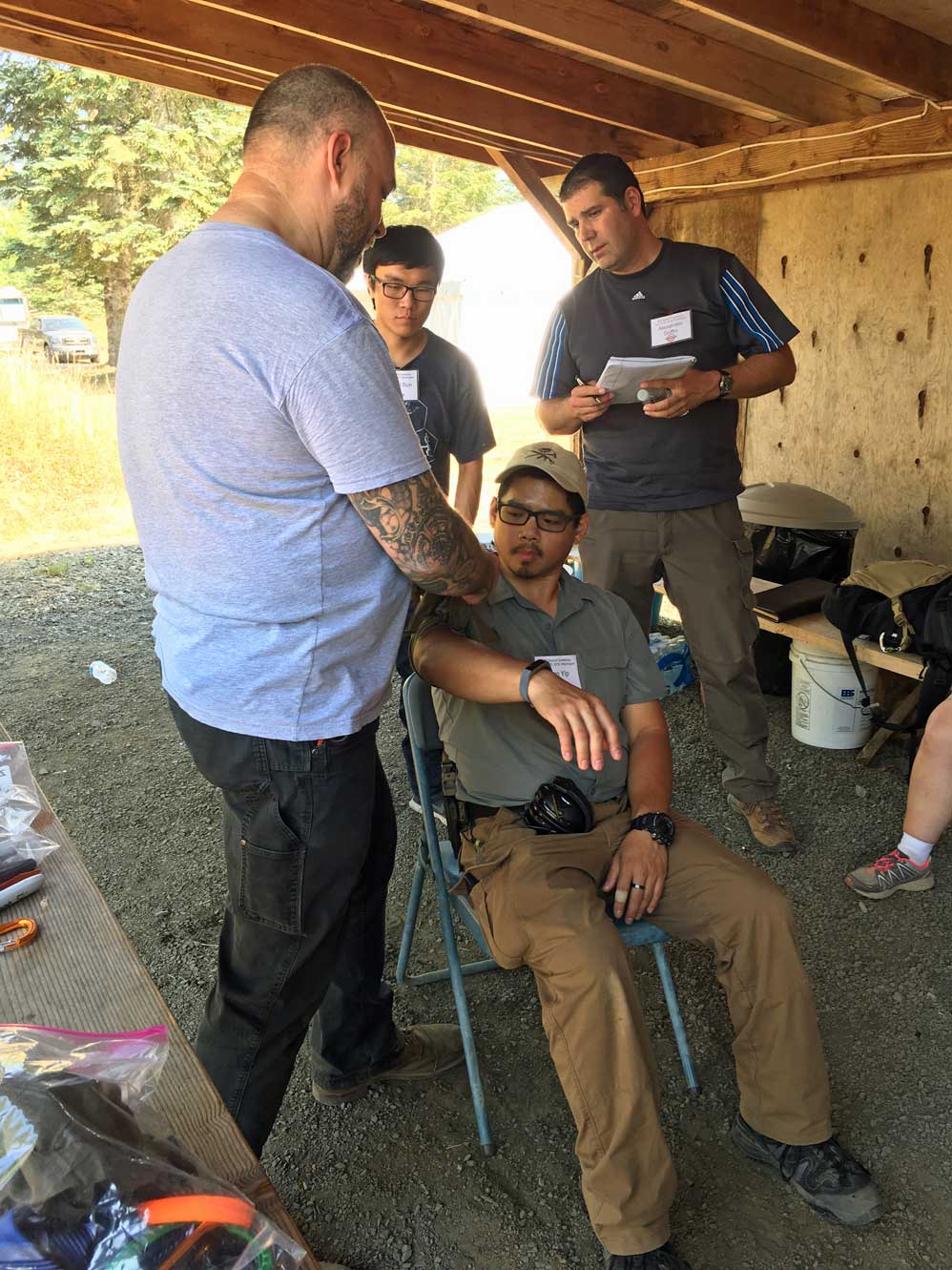 The remainder of the final afternoon was spent in a medical class with Dr. Sherman House. I had taken a 2 day medical class from Sherman and Paul Gomez many years ago, and it was great to get more training from Dr. House at the conference. This class included discussion of how to use available items (neck tie and a pen, for example) to render aid when purpose-built medical supplies were not available (tourniquet, pressure dressing).