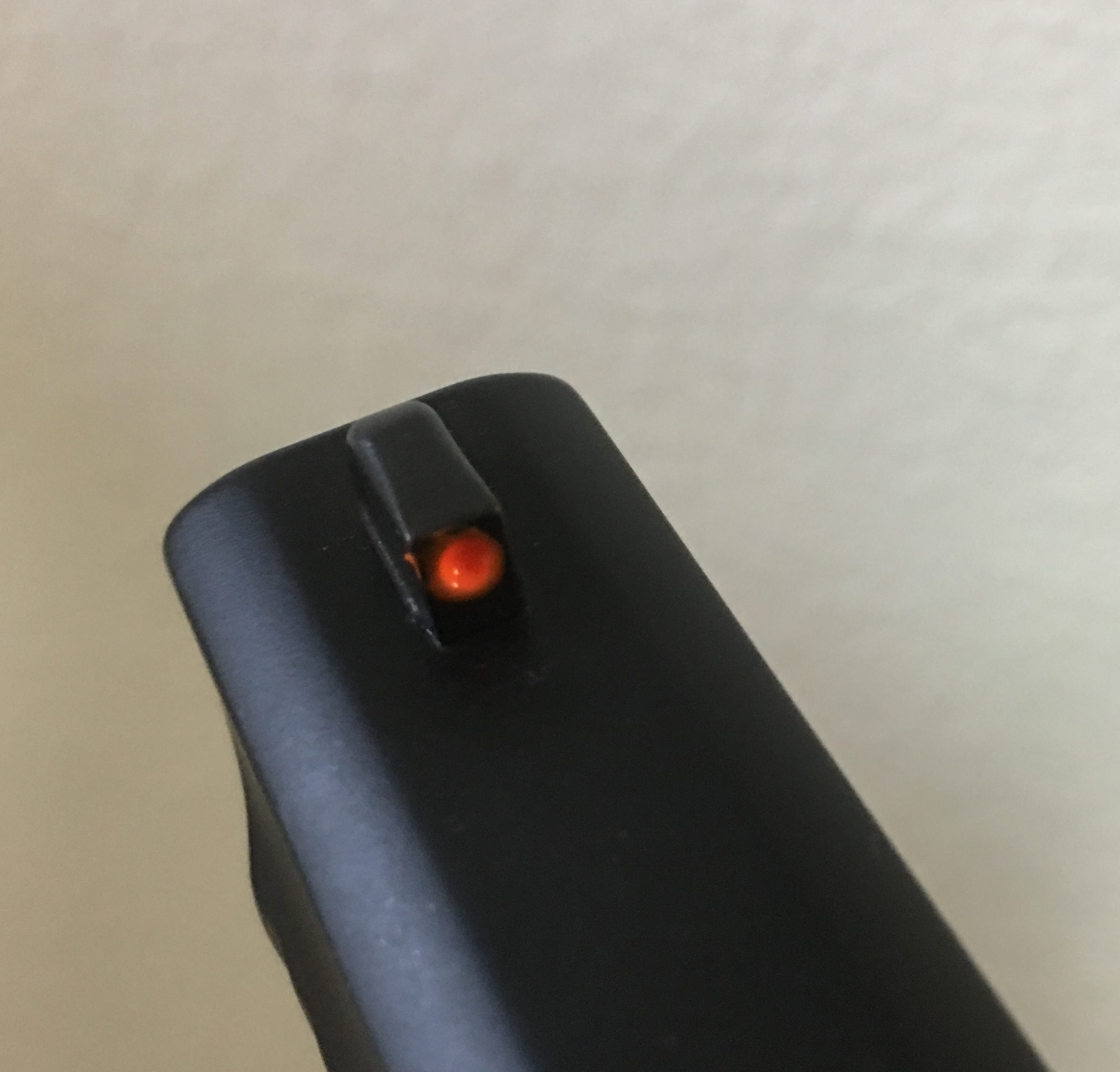 Holding the gun in one hand, trying to get it lined up properly, holding the iPhone in the other hand, *and* getting the phone to focus on the front sight instead of the rear sight was hard, so here’s a close up pic of the front sight by itself so you can see the orange dot better.